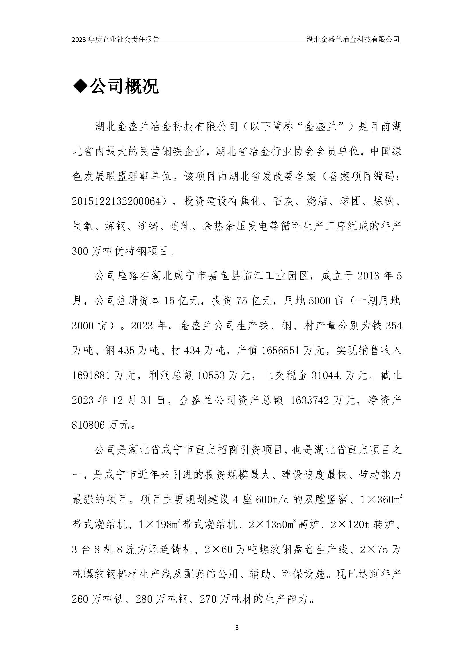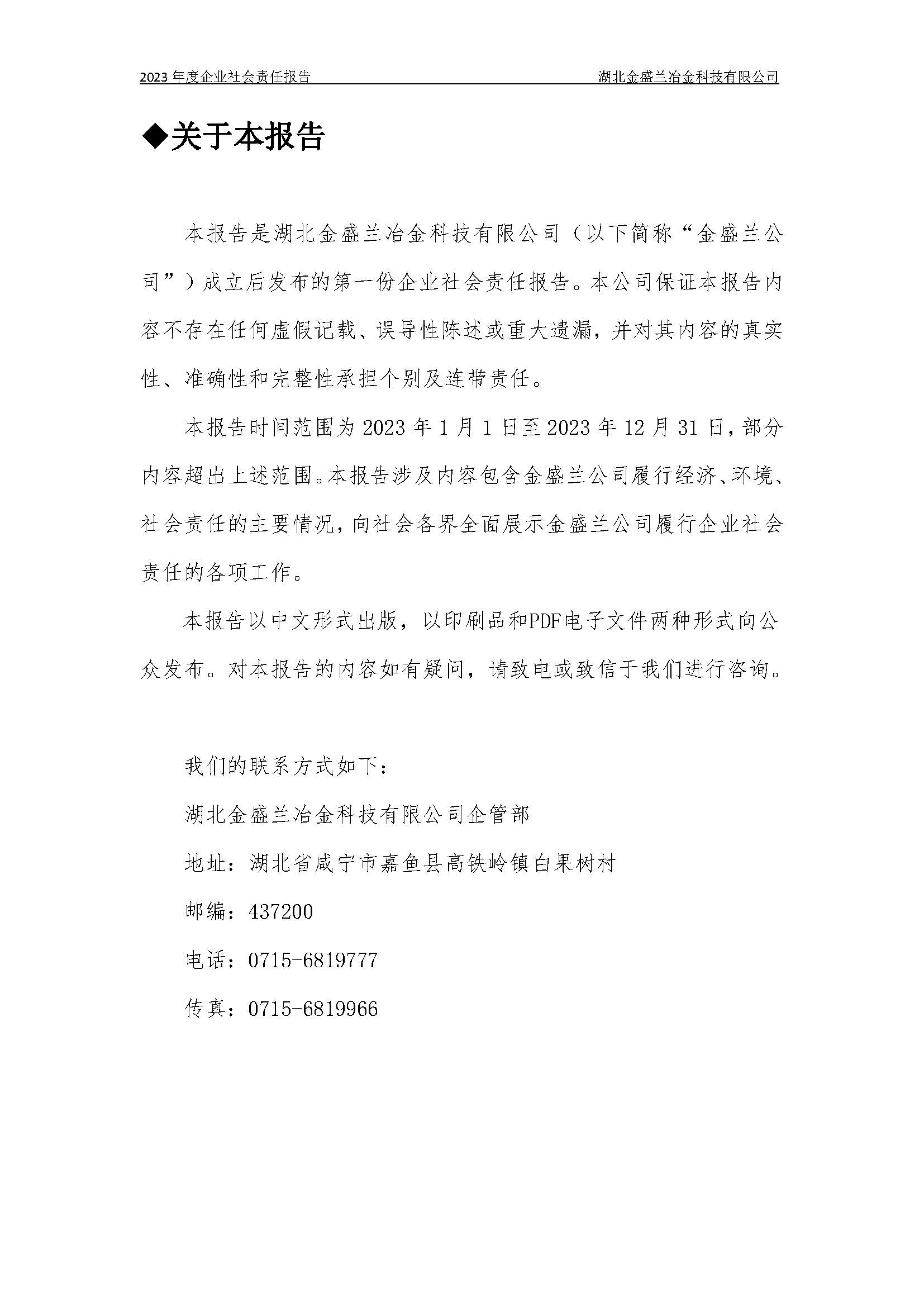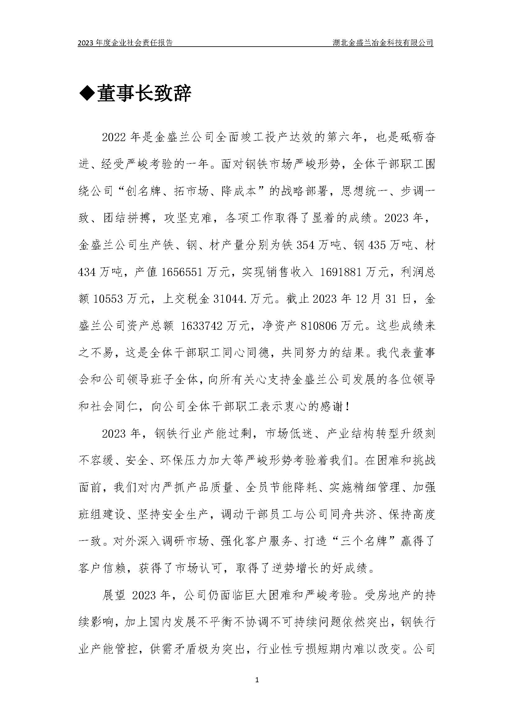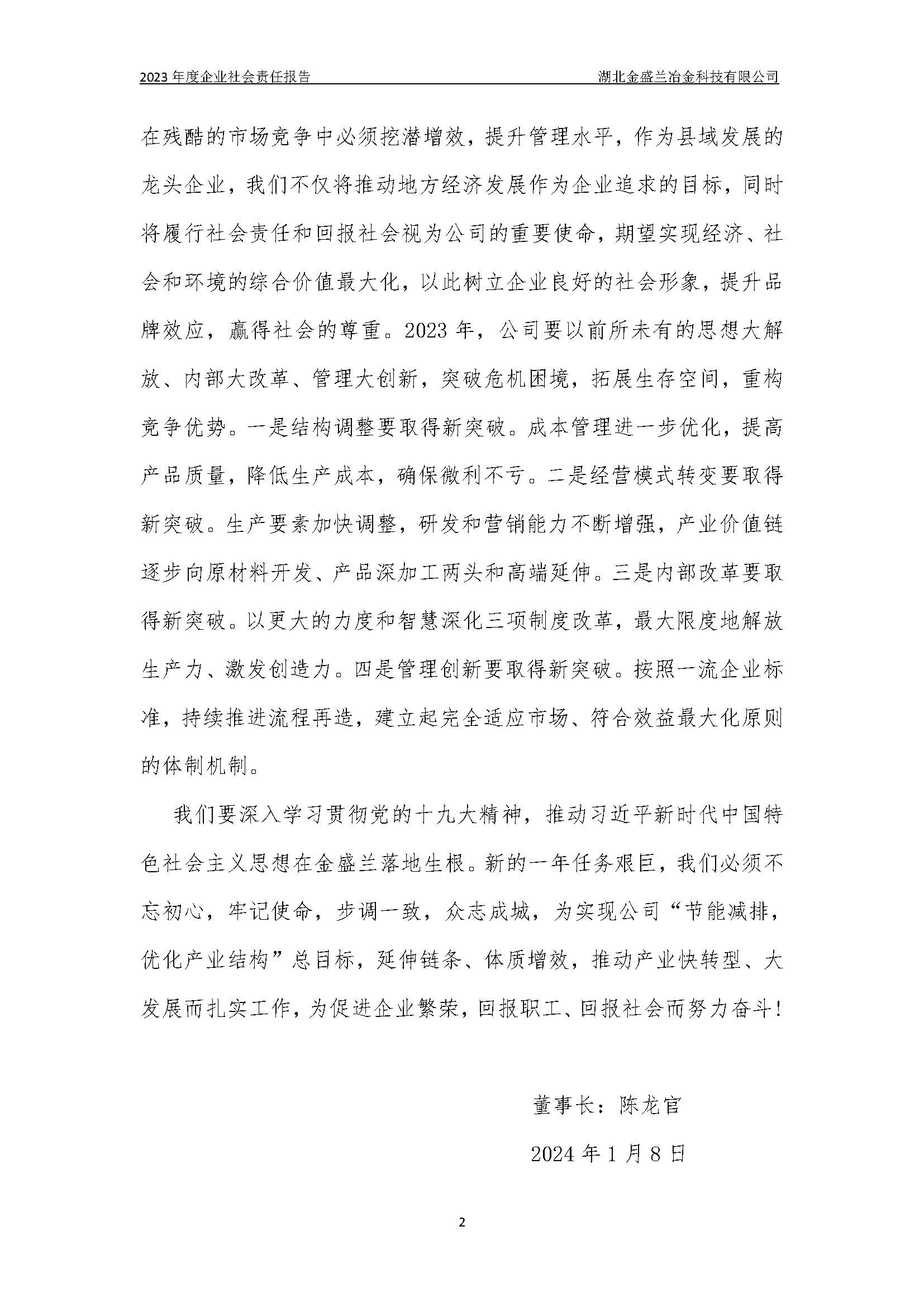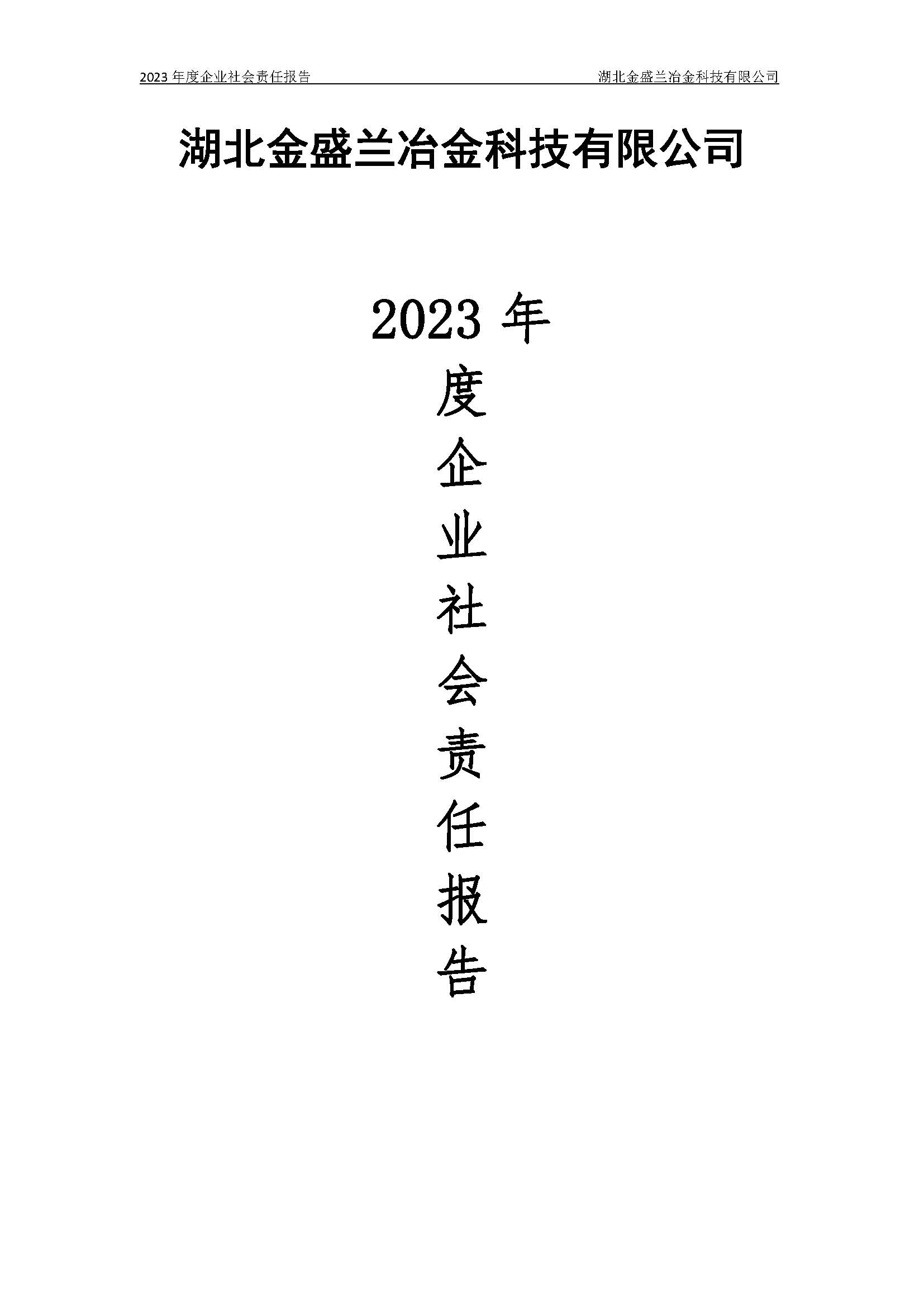 湖北金盛蘭冶金科技有限公司2023年度企業(yè)社會責(zé)任報告