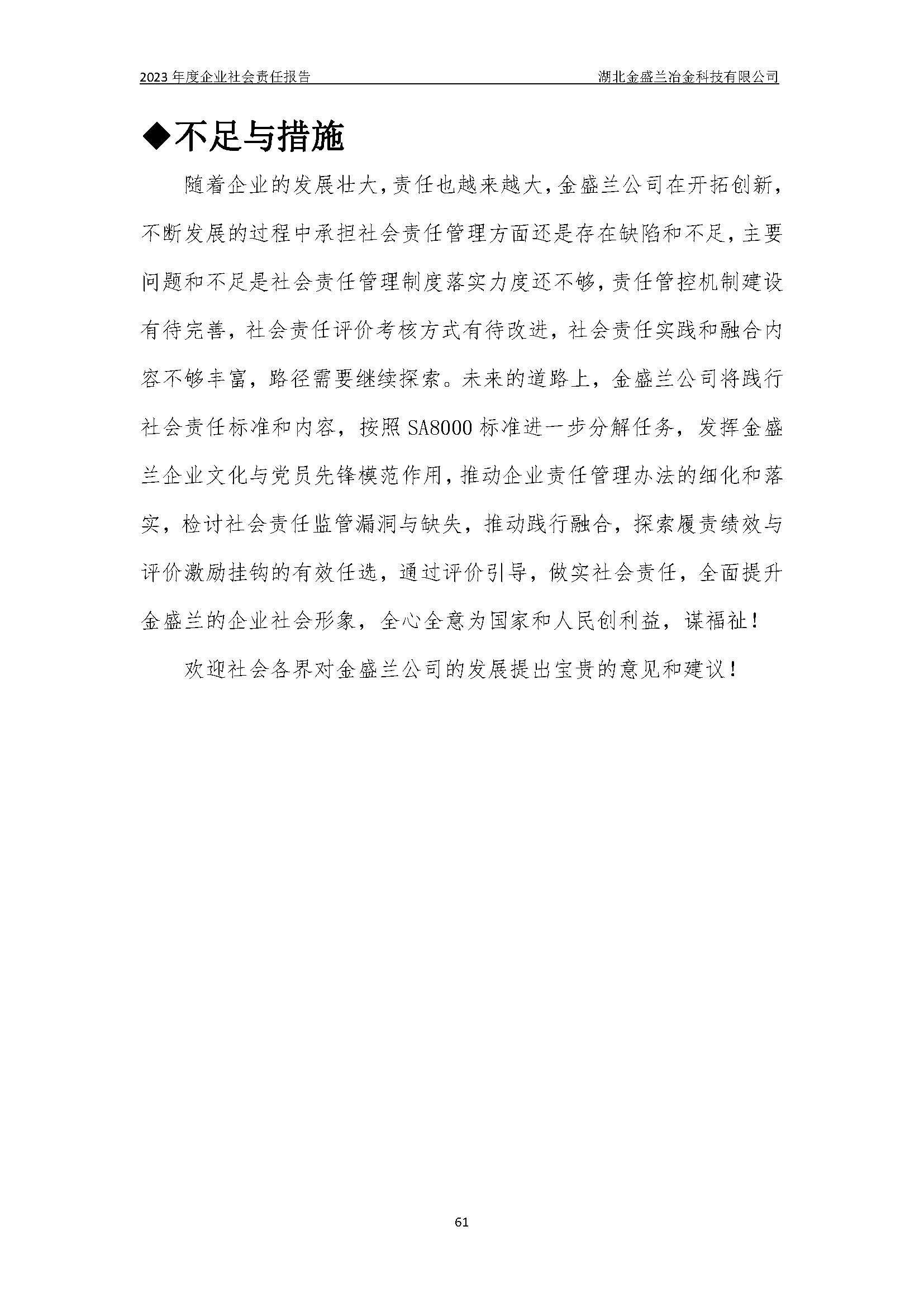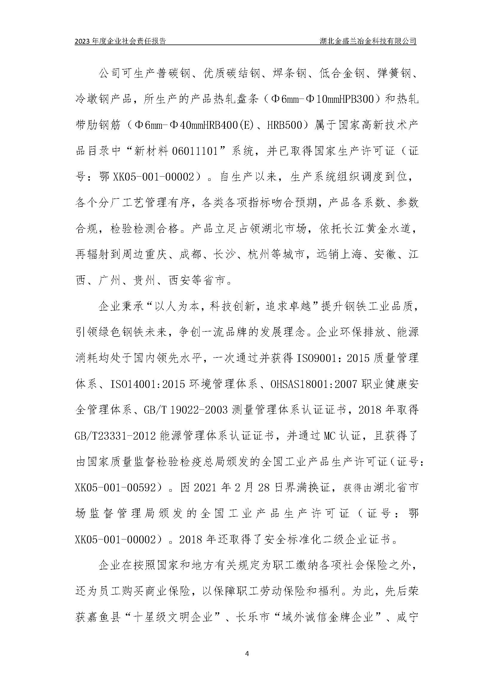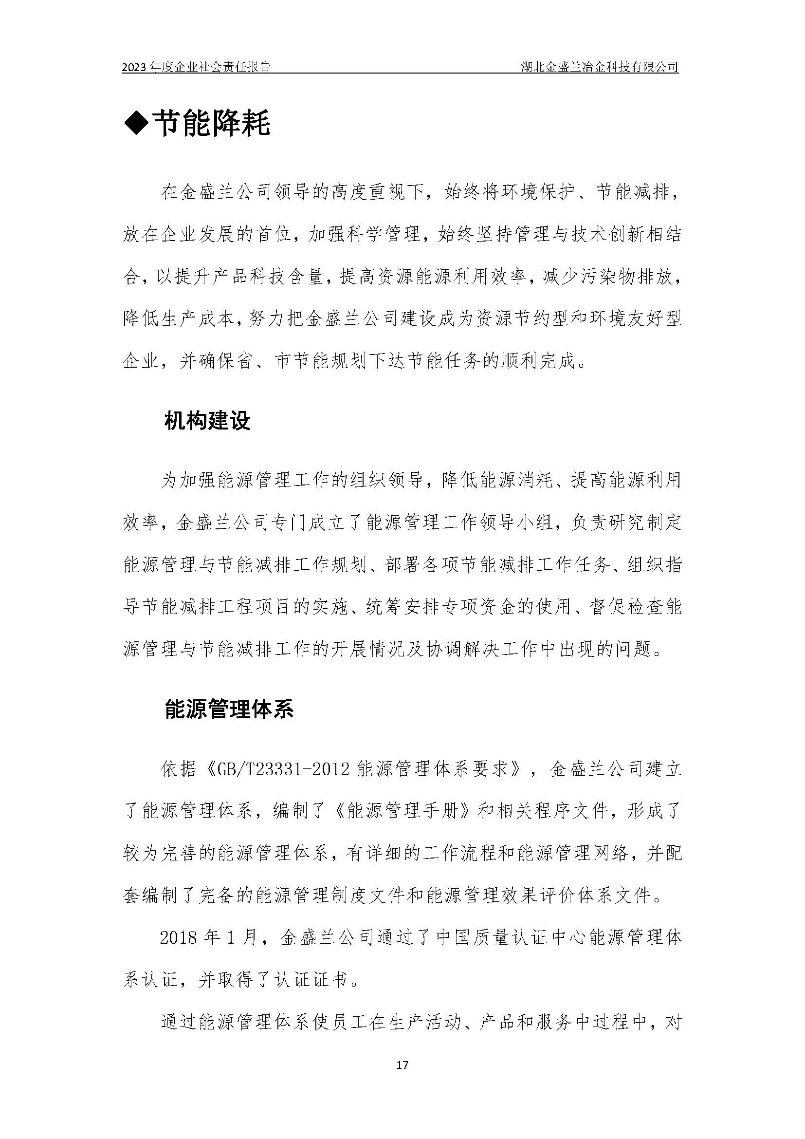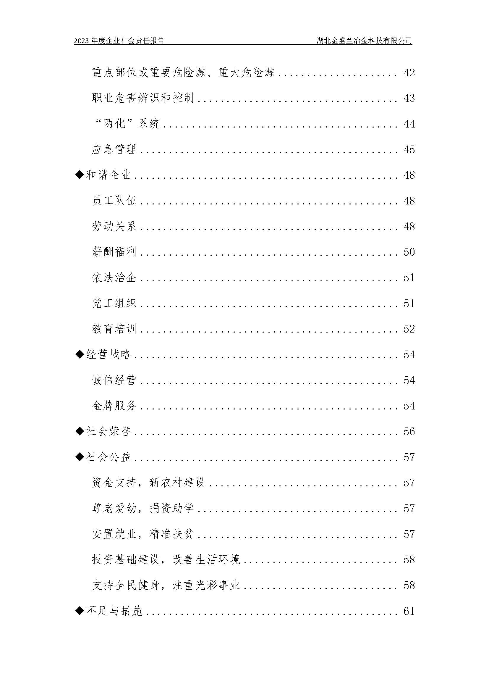 湖北金盛蘭冶金科技有限公司2023年度企業(yè)社會責(zé)任報告