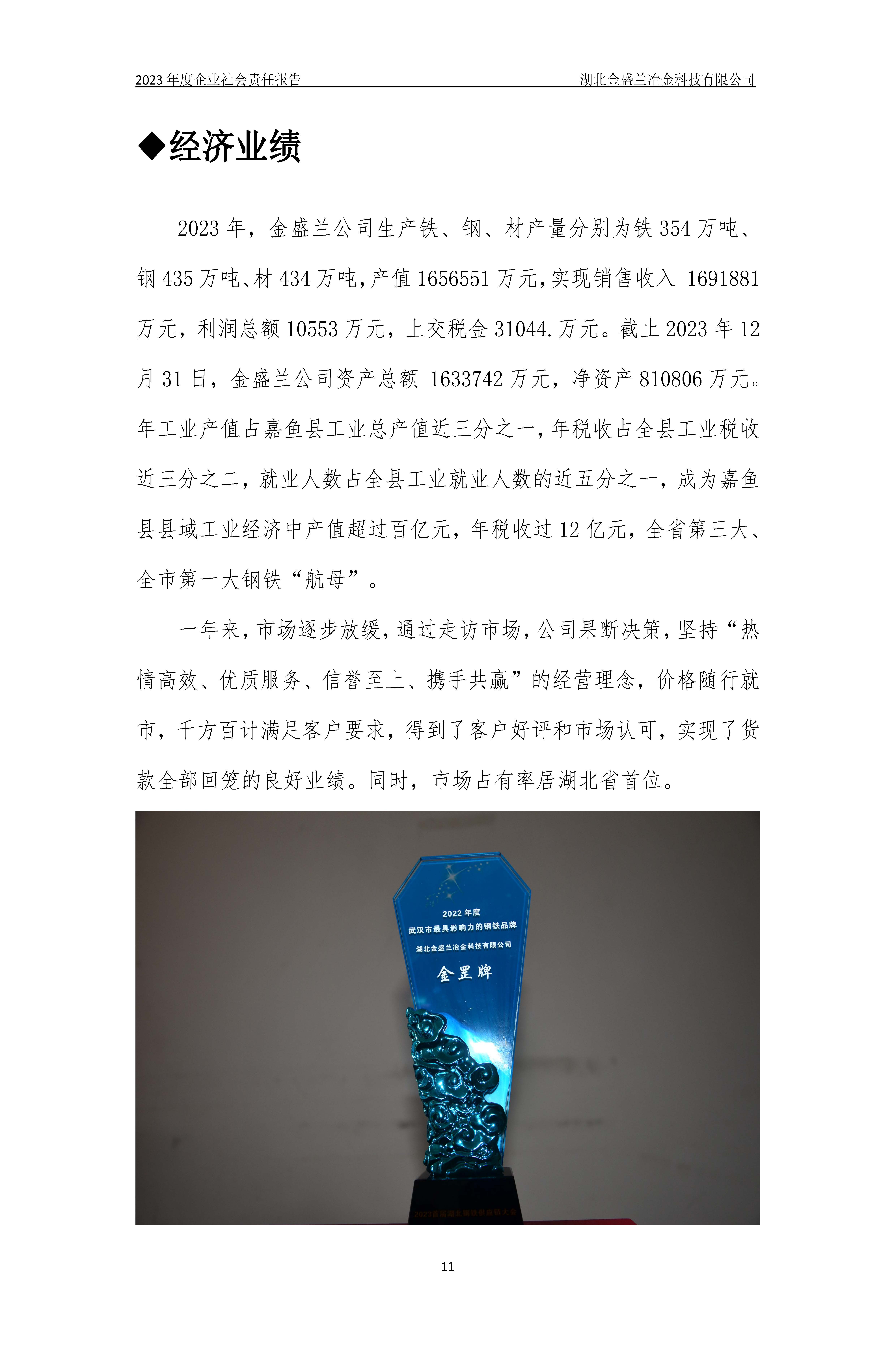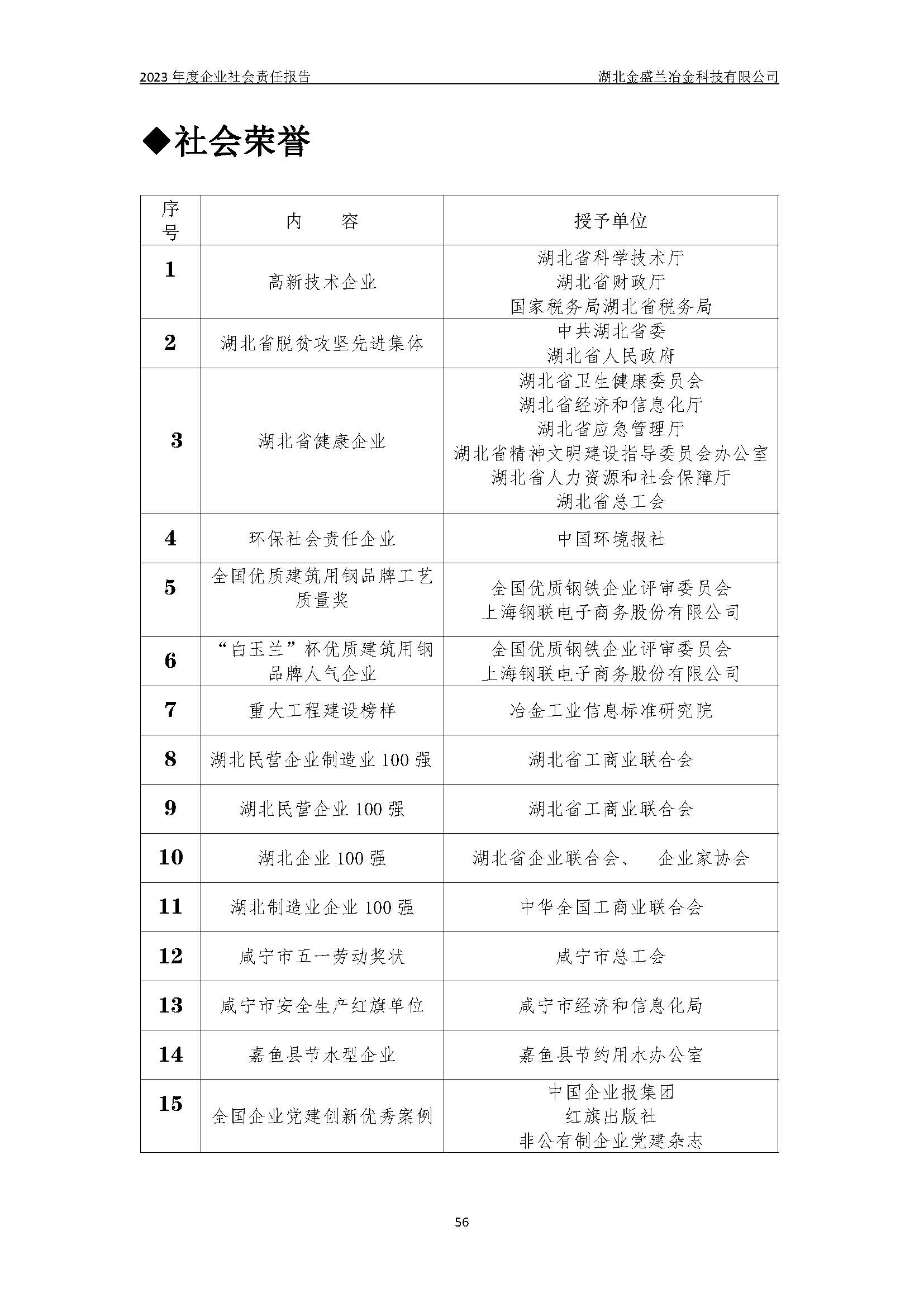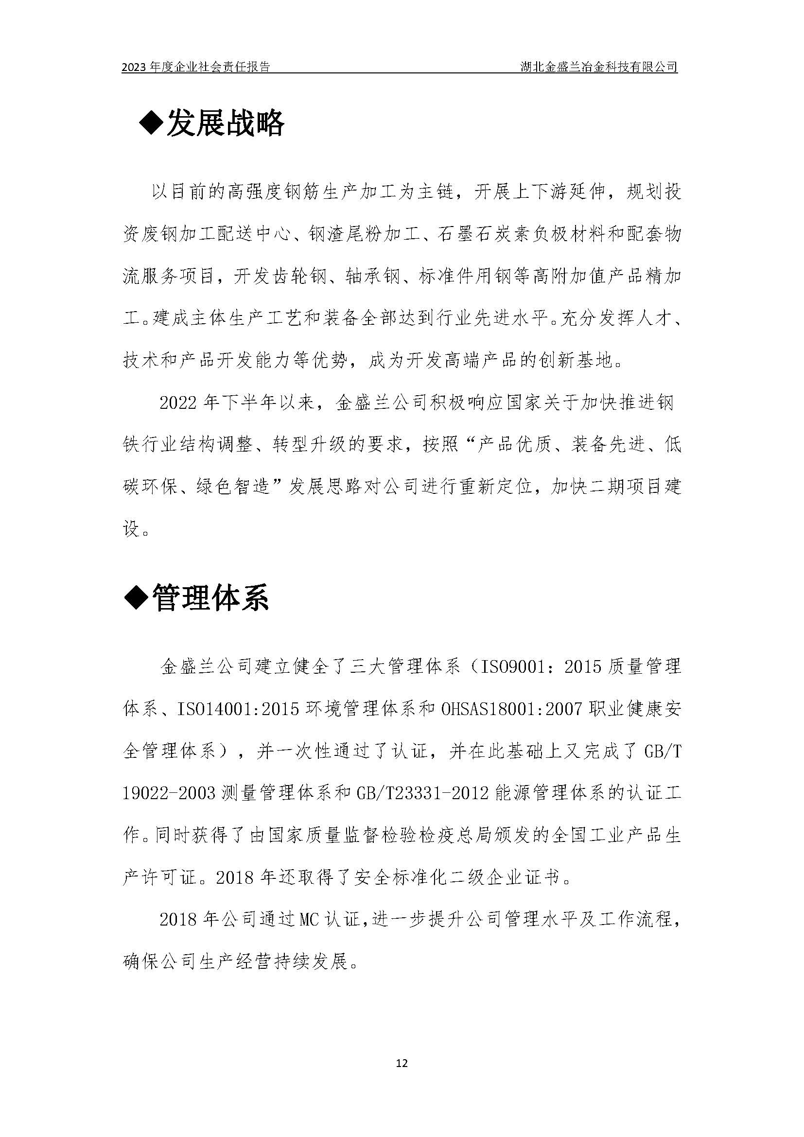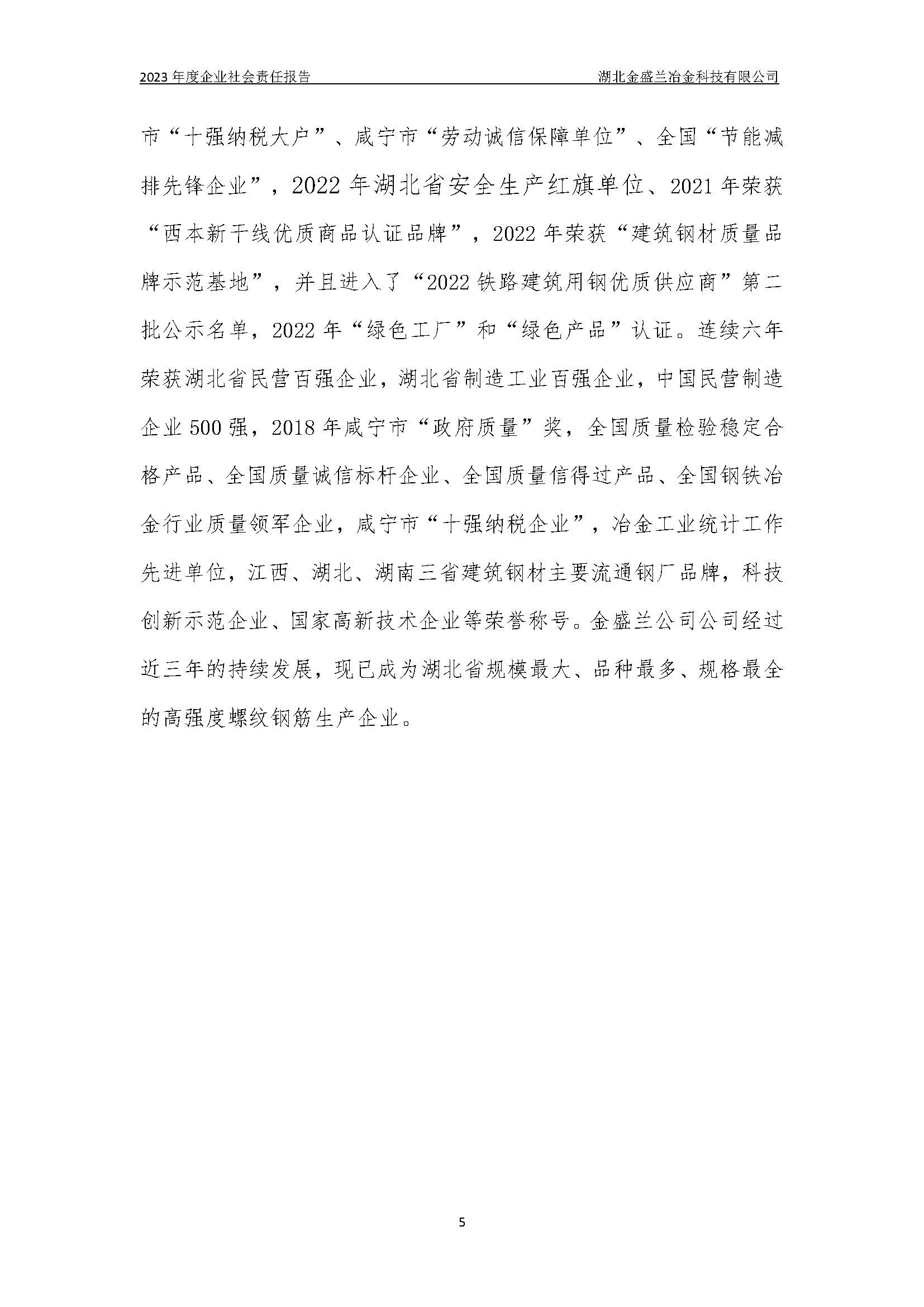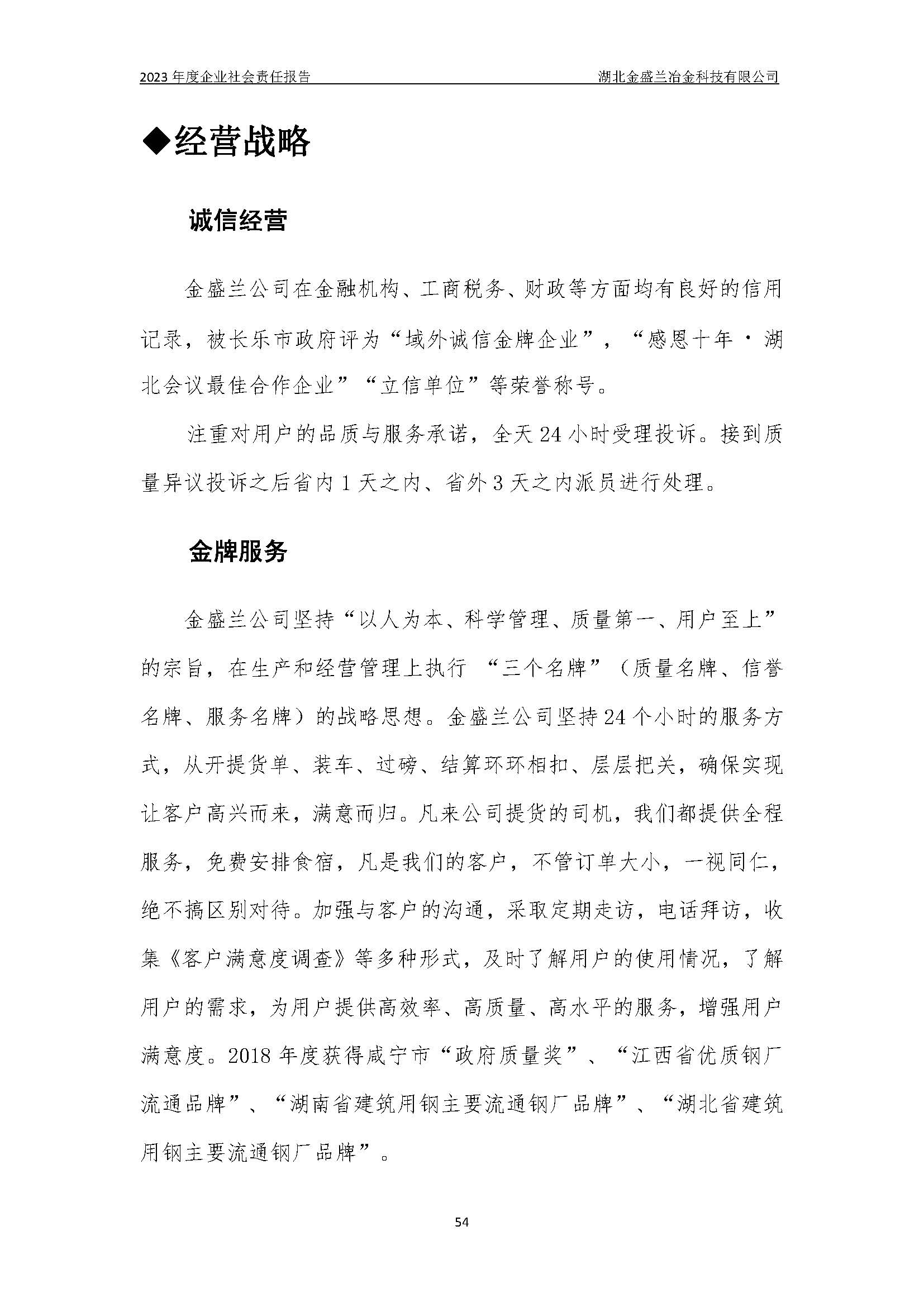 湖北金盛蘭冶金科技有限公司2023年度企業(yè)社會責(zé)任報告