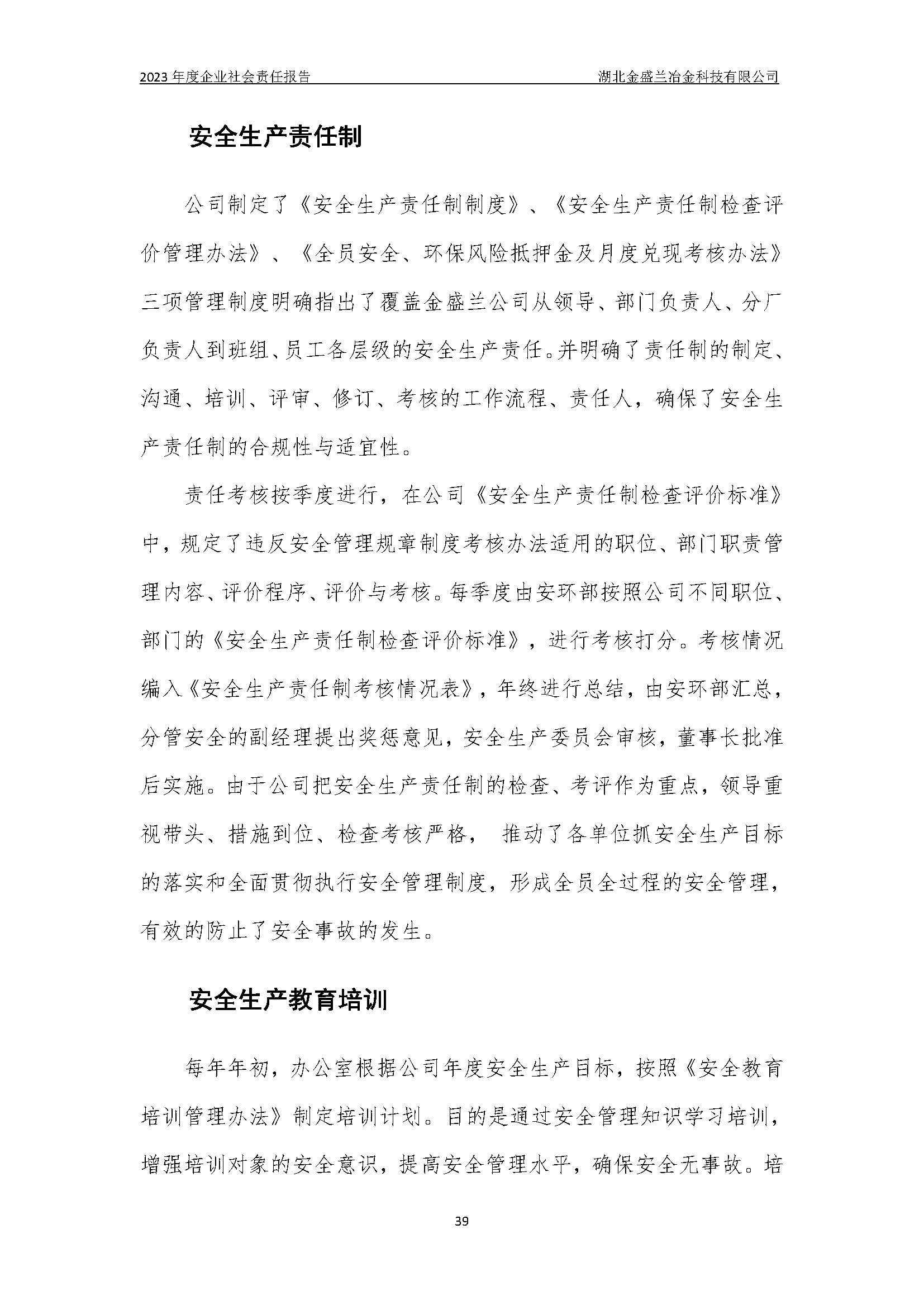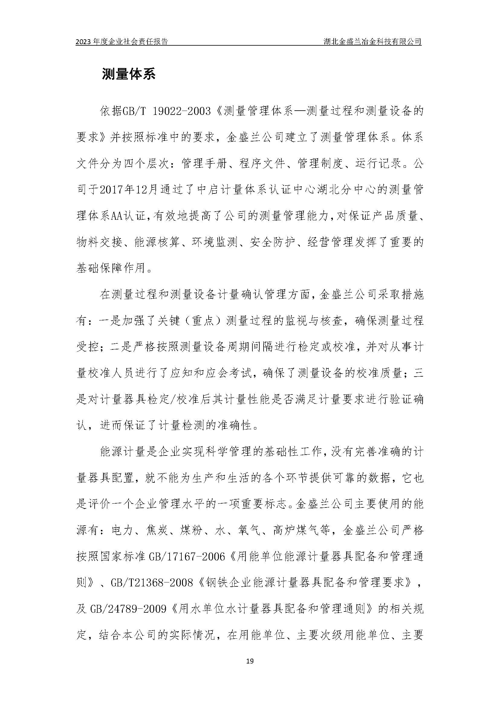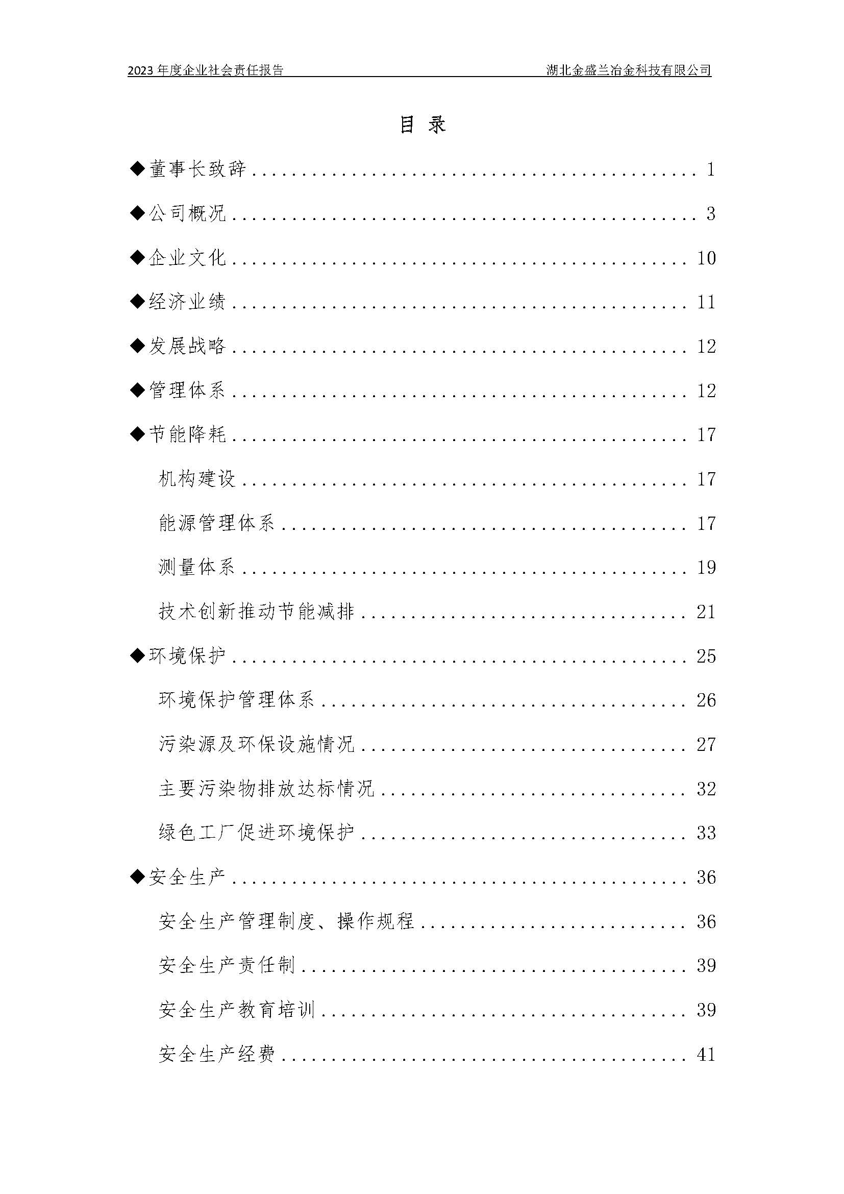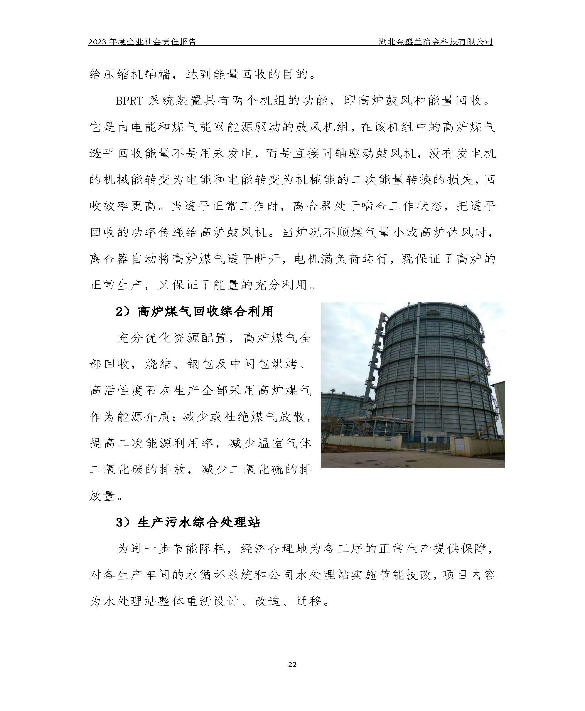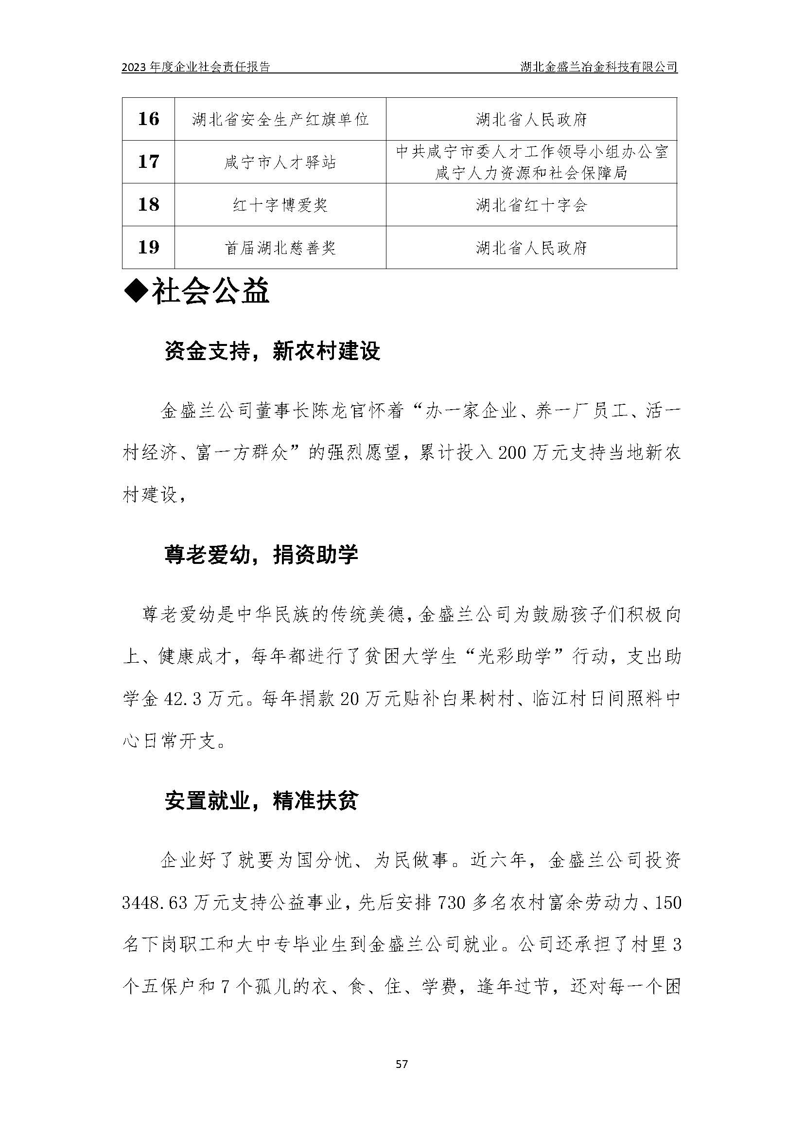 湖北金盛蘭冶金科技有限公司2023年度企業(yè)社會責(zé)任報告