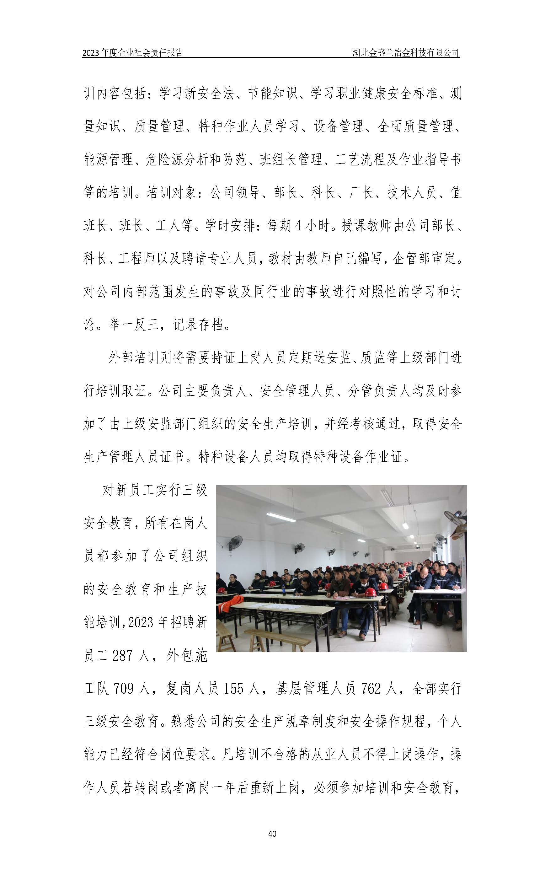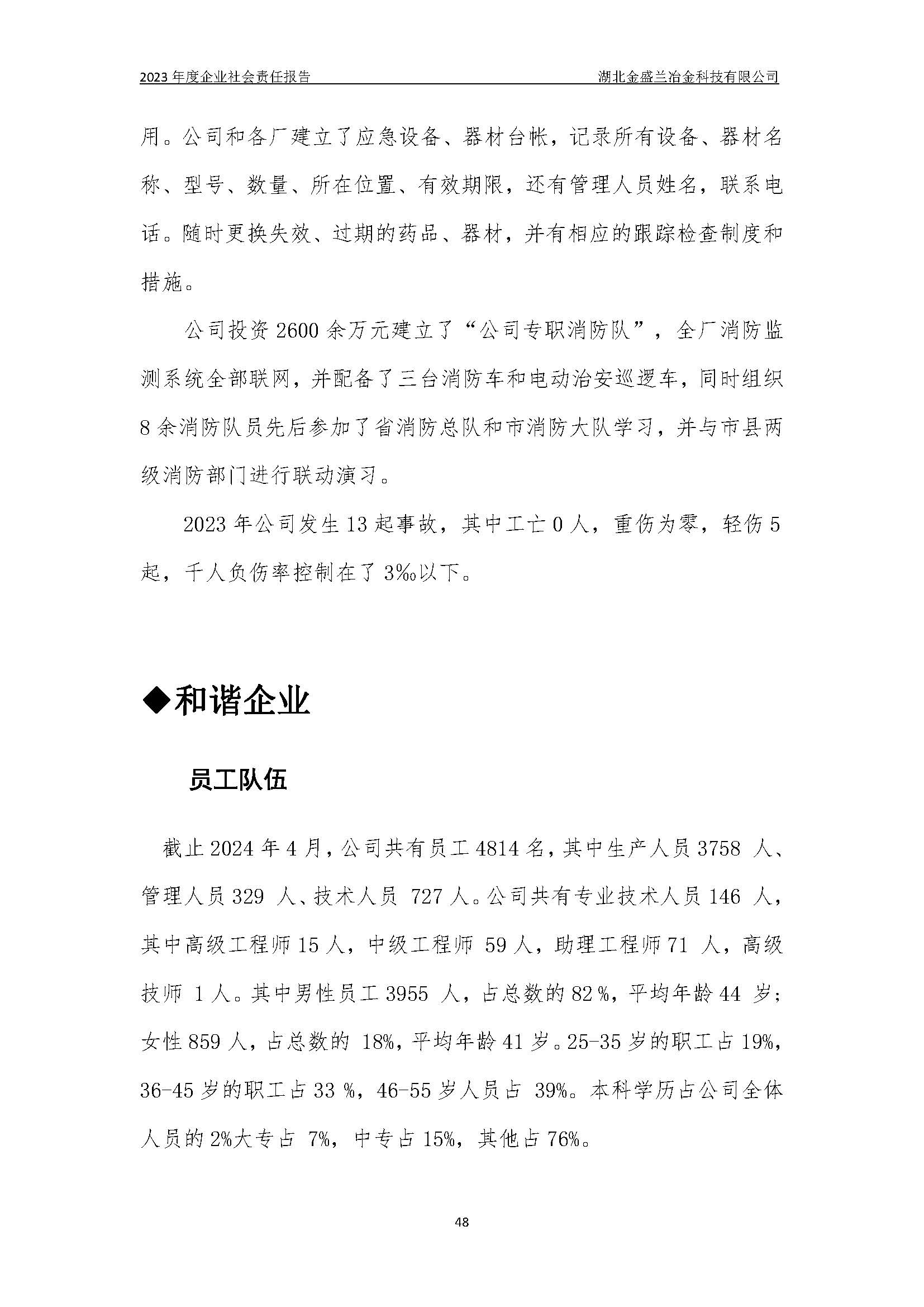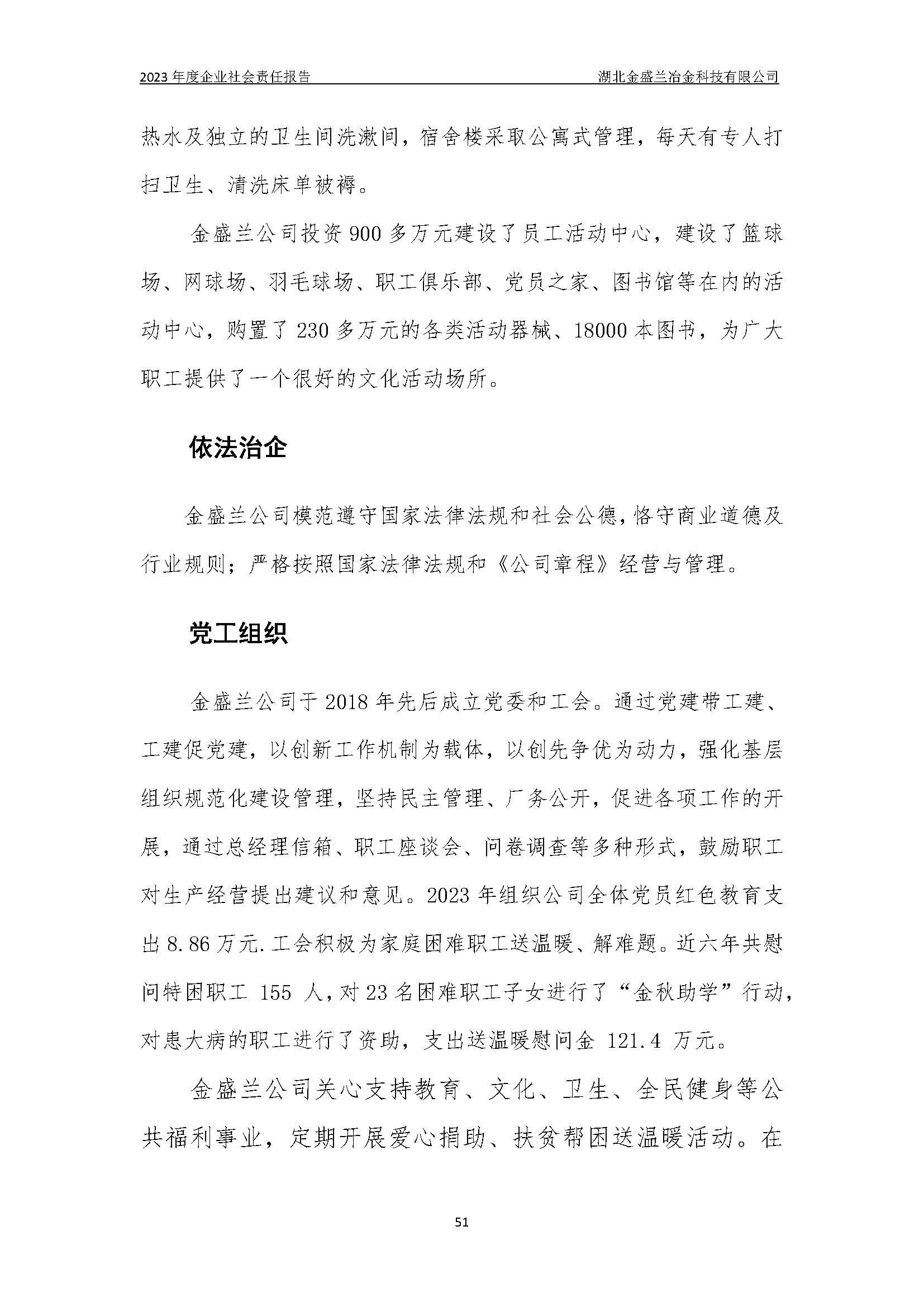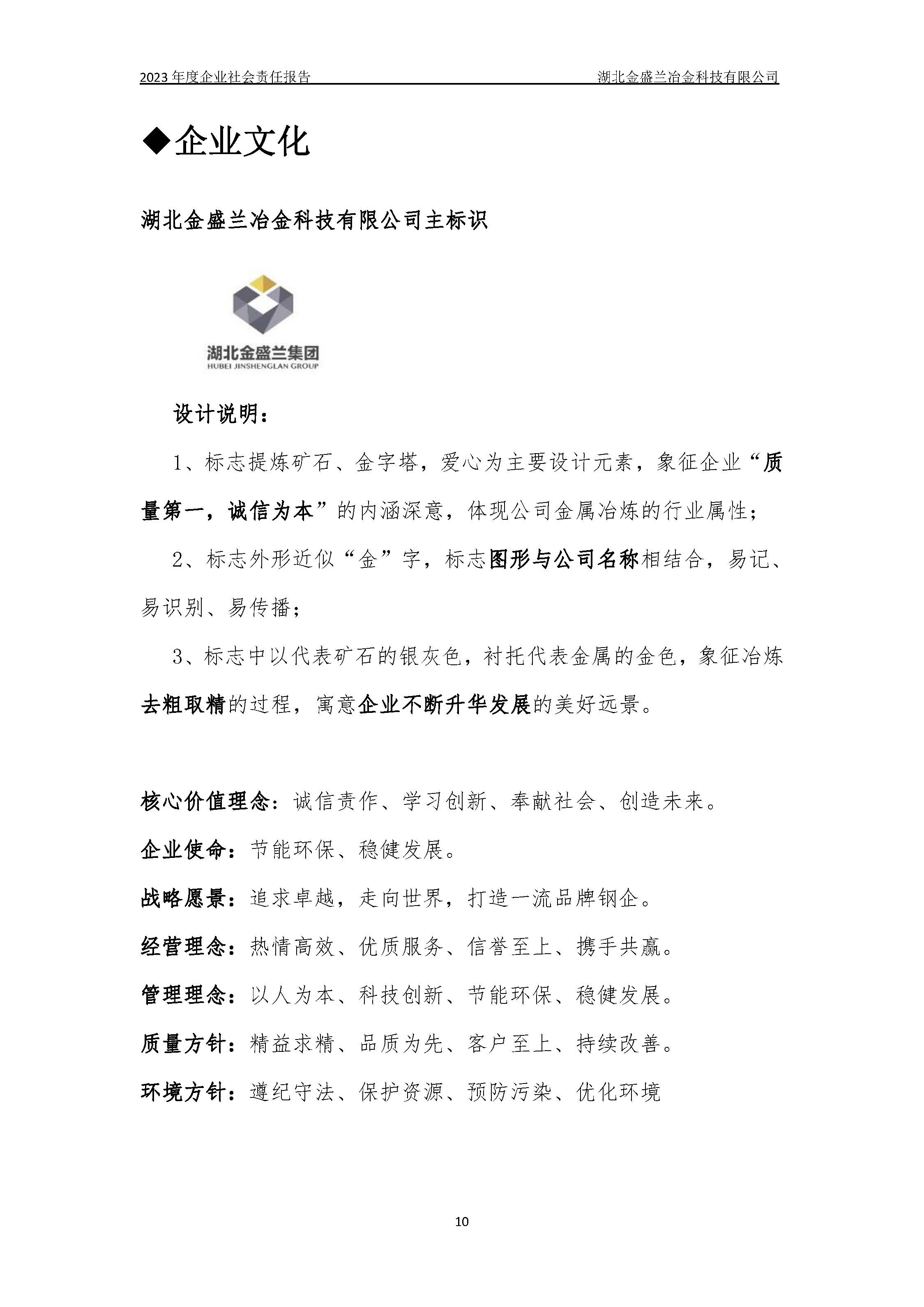 湖北金盛蘭冶金科技有限公司2023年度企業(yè)社會責(zé)任報告