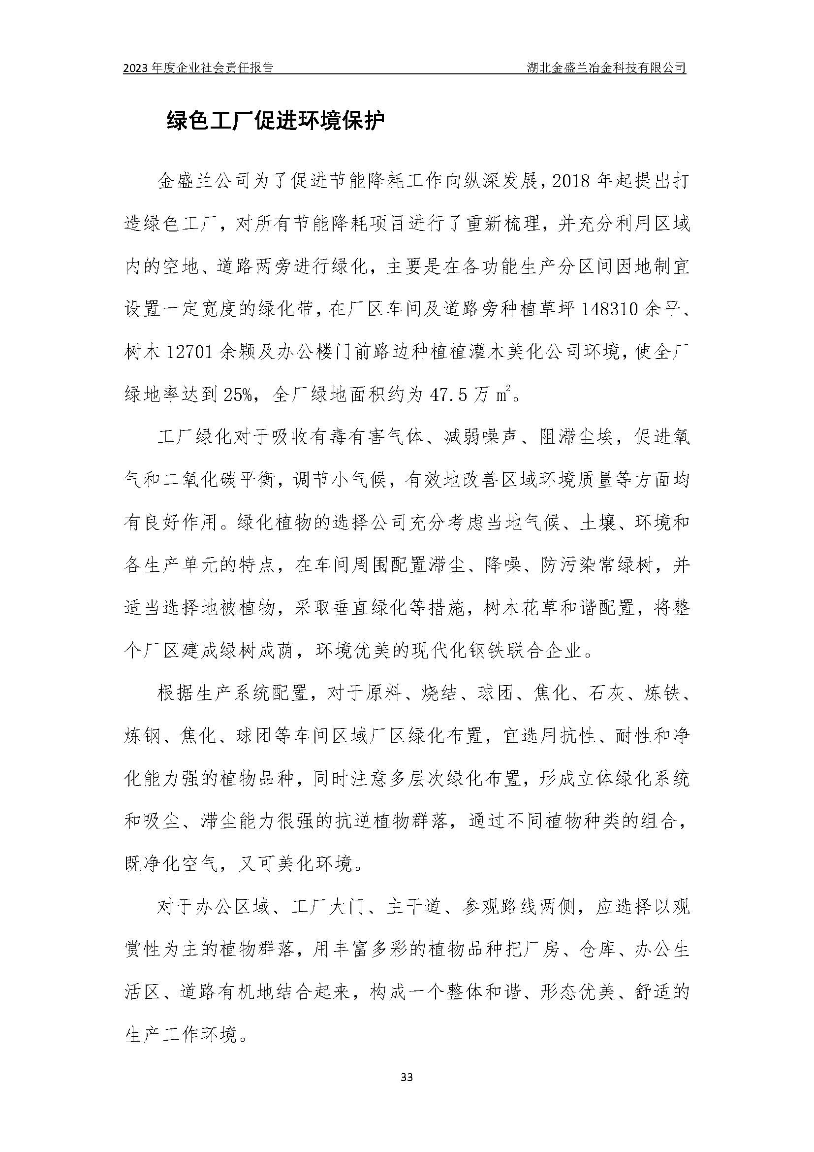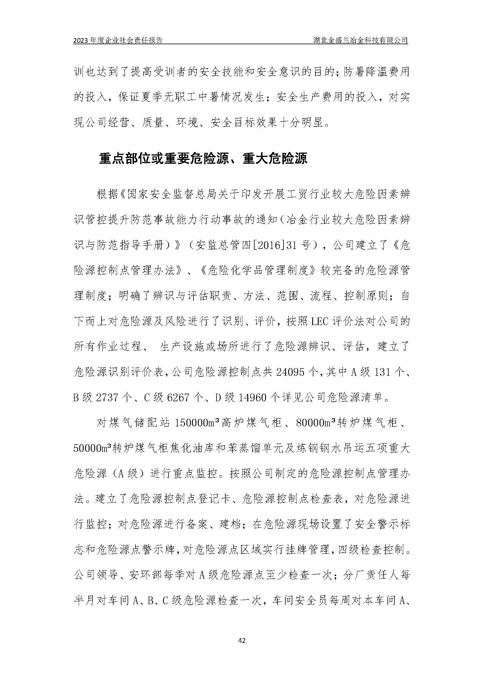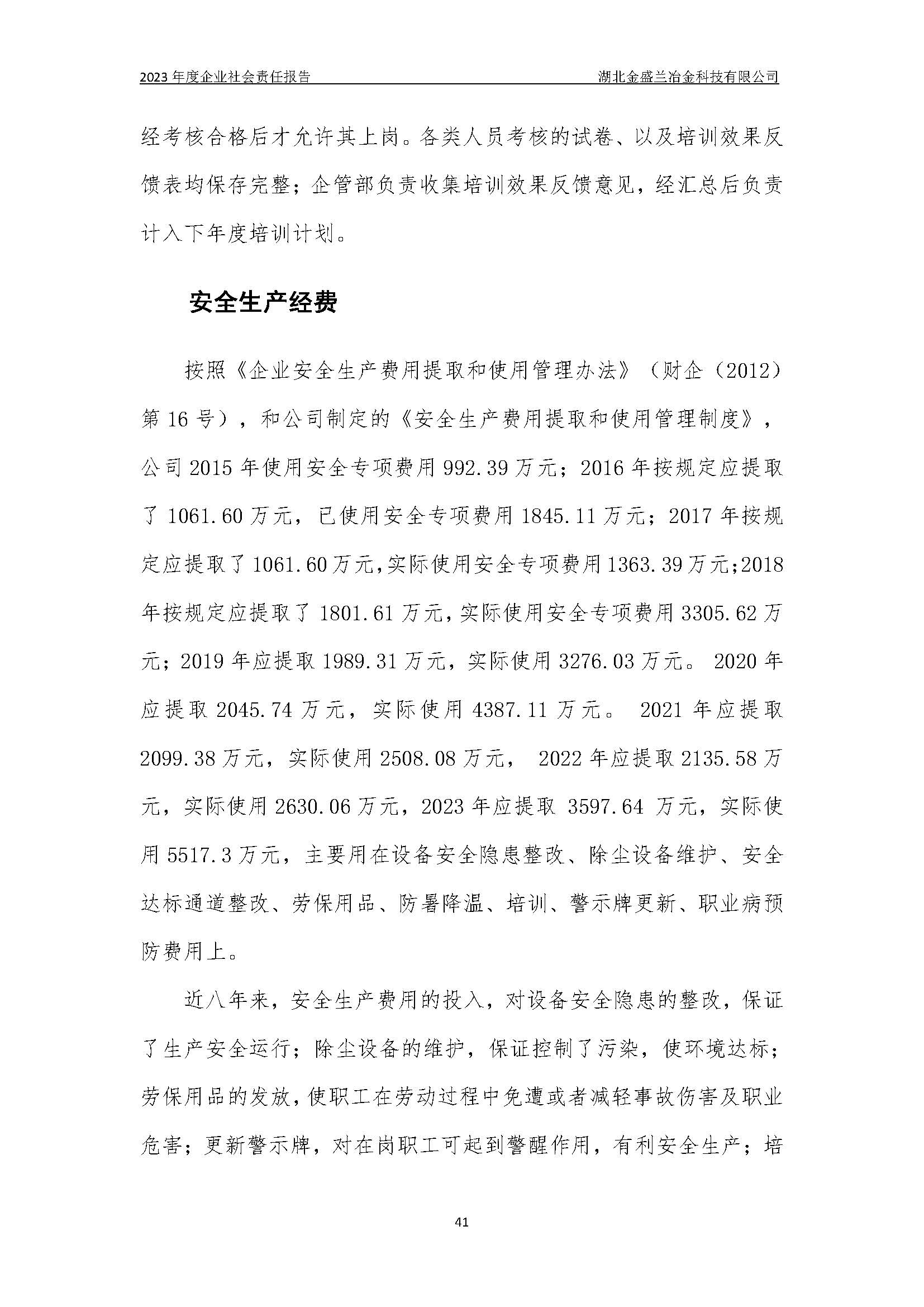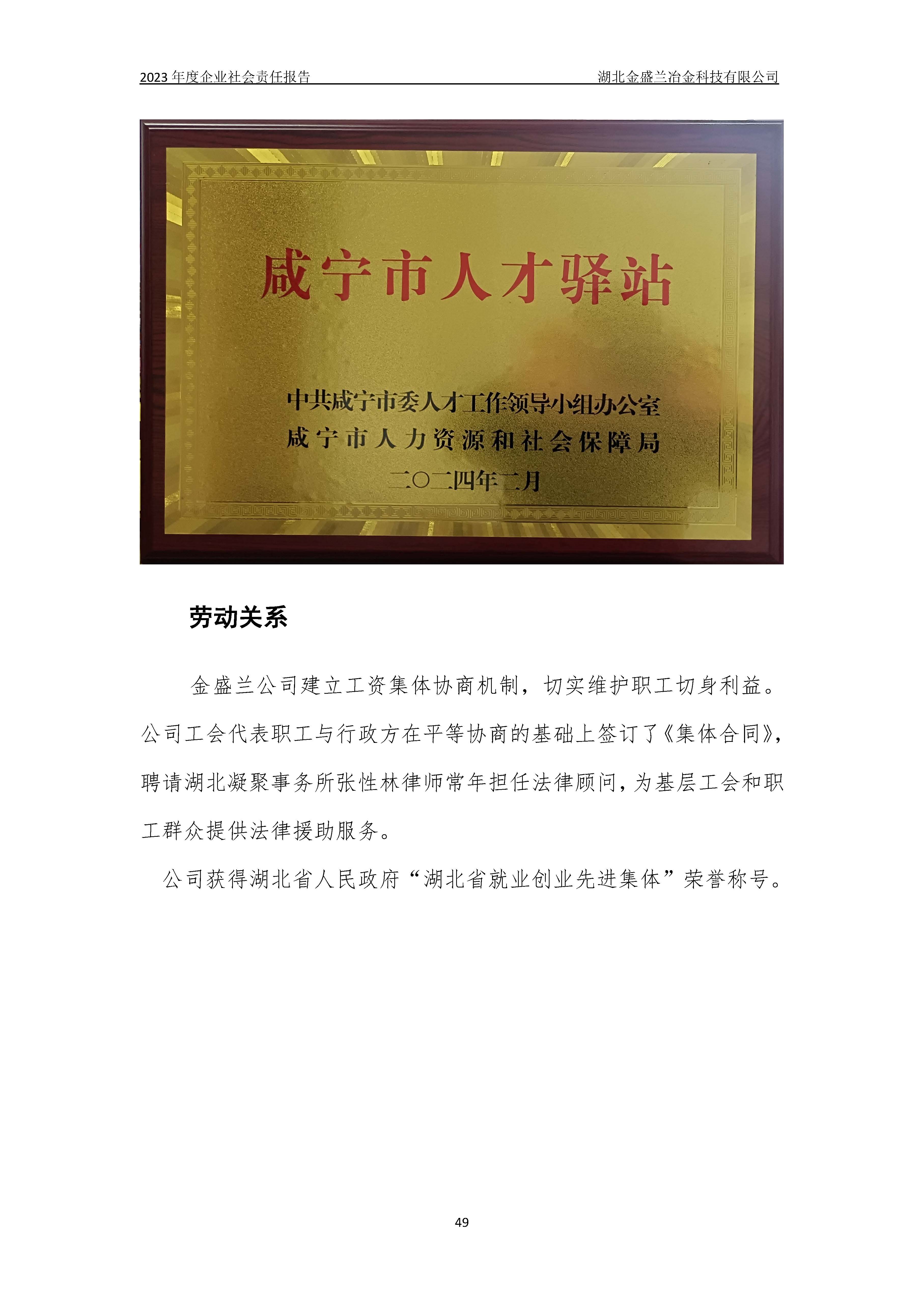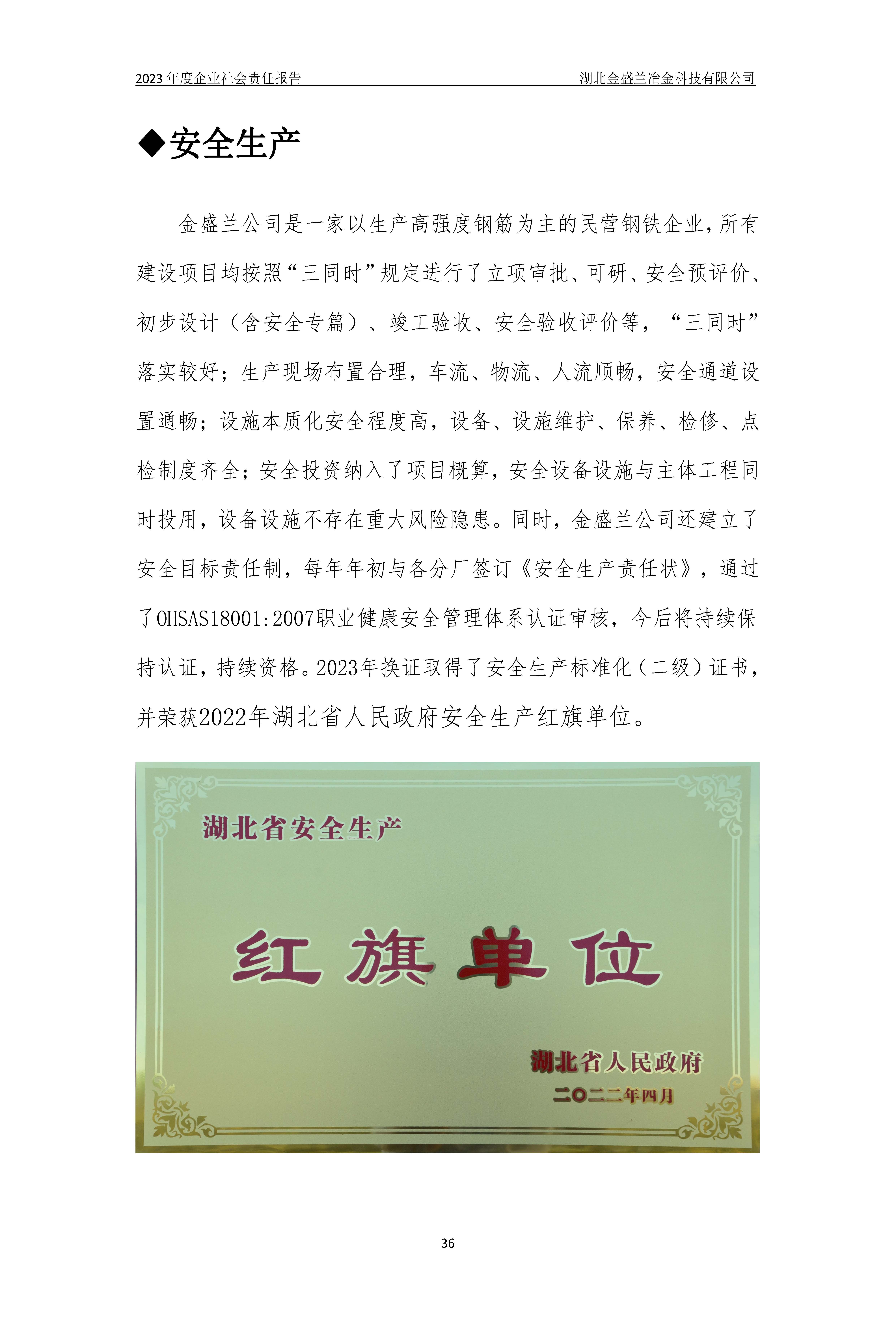 湖北金盛蘭冶金科技有限公司2023年度企業(yè)社會責(zé)任報告