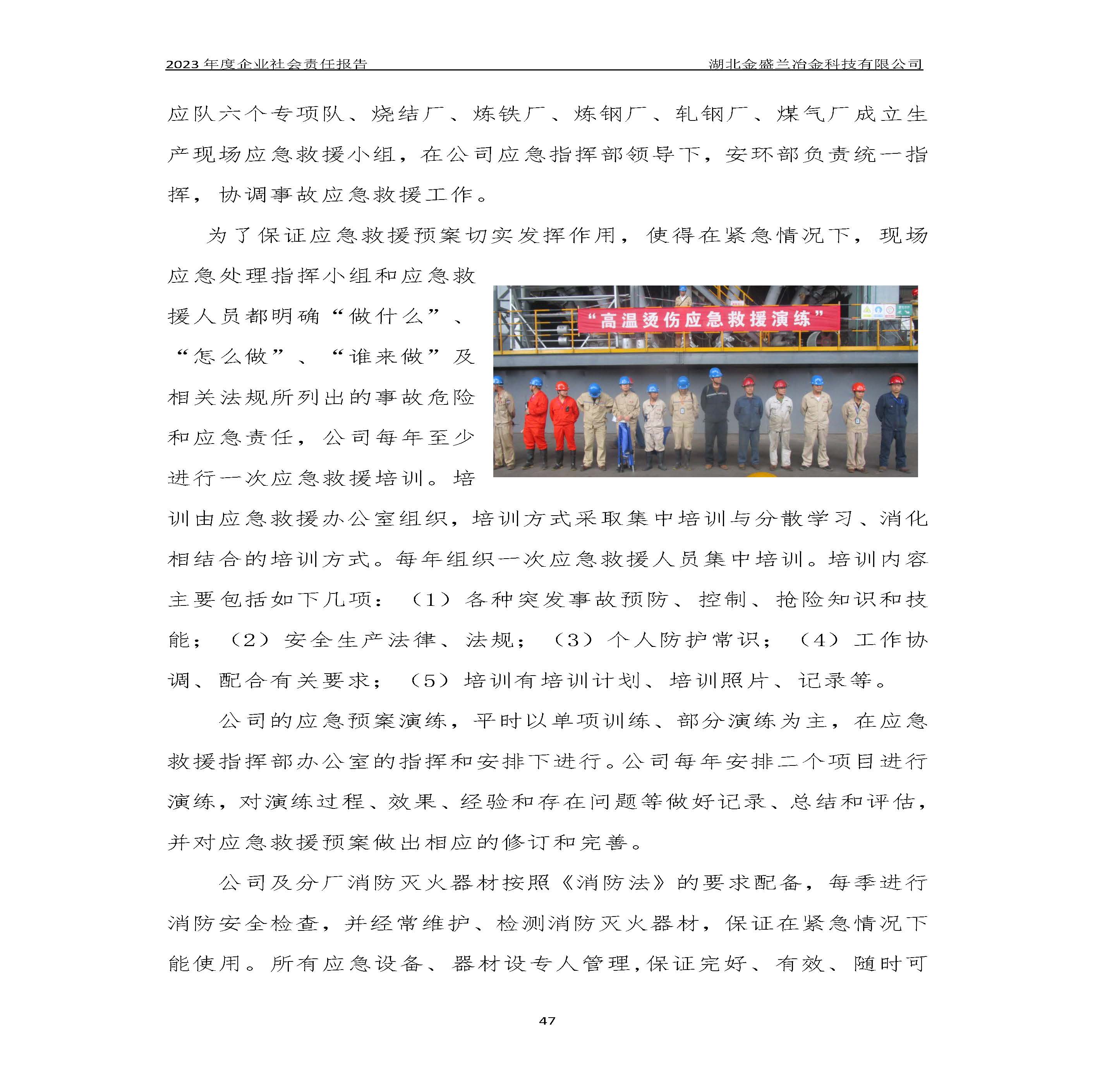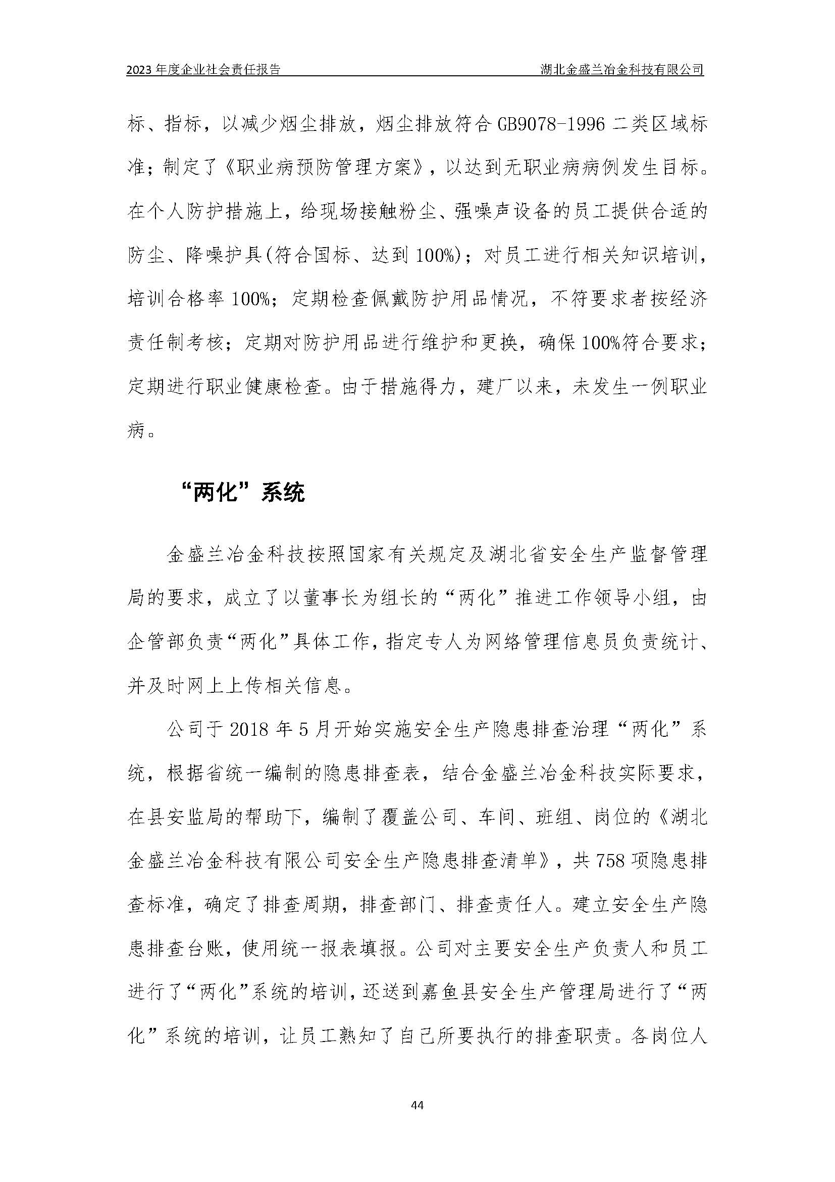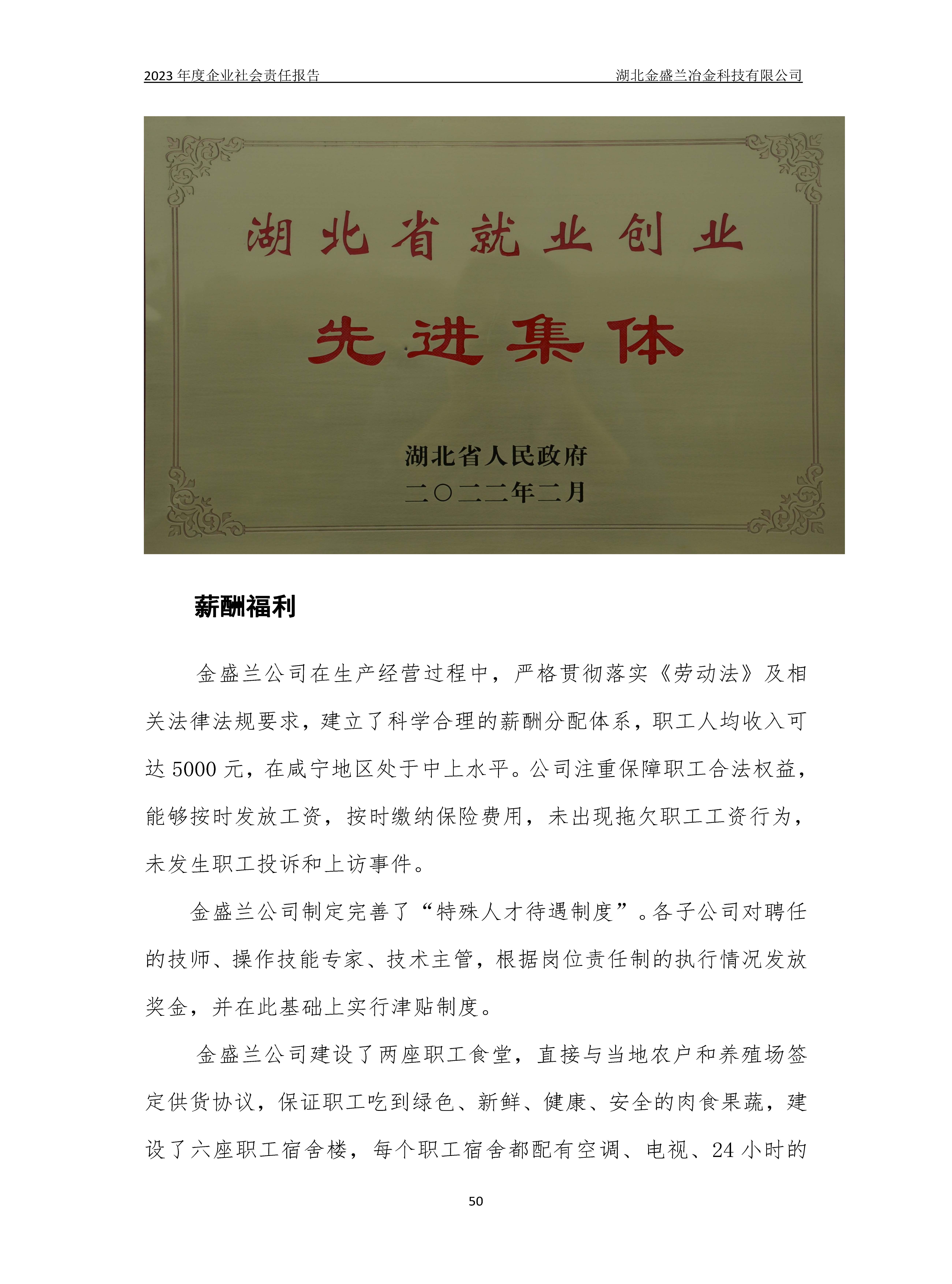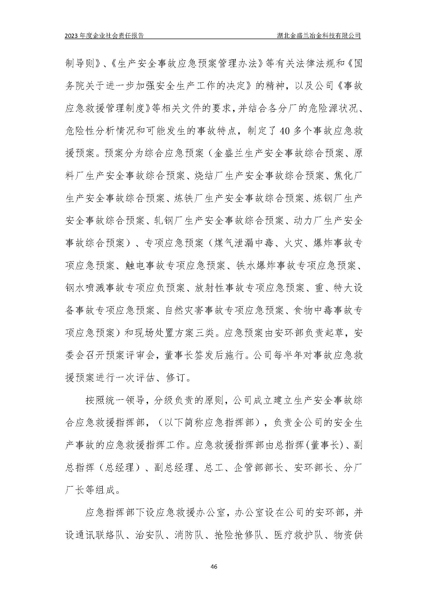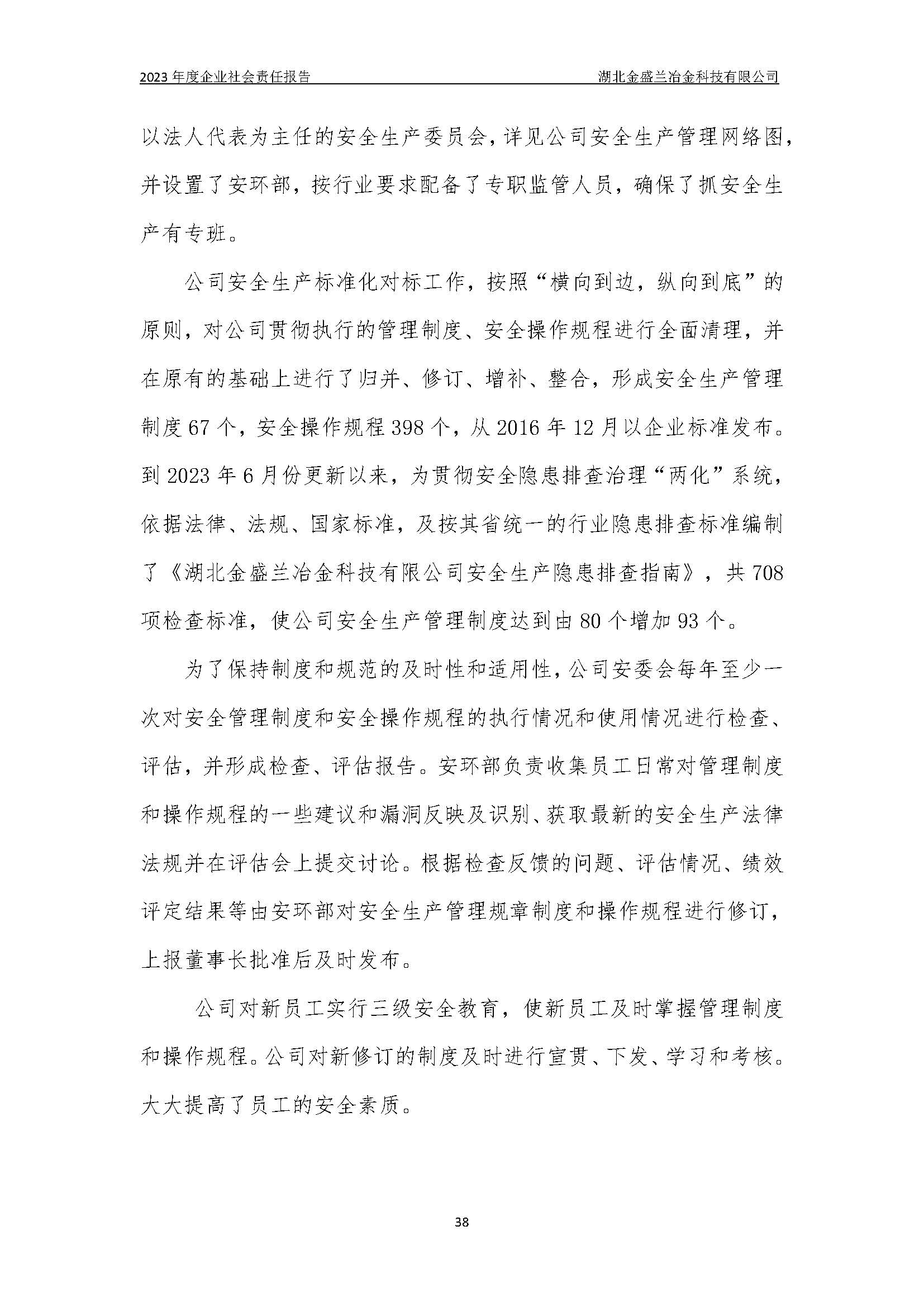 湖北金盛蘭冶金科技有限公司2023年度企業(yè)社會責(zé)任報告