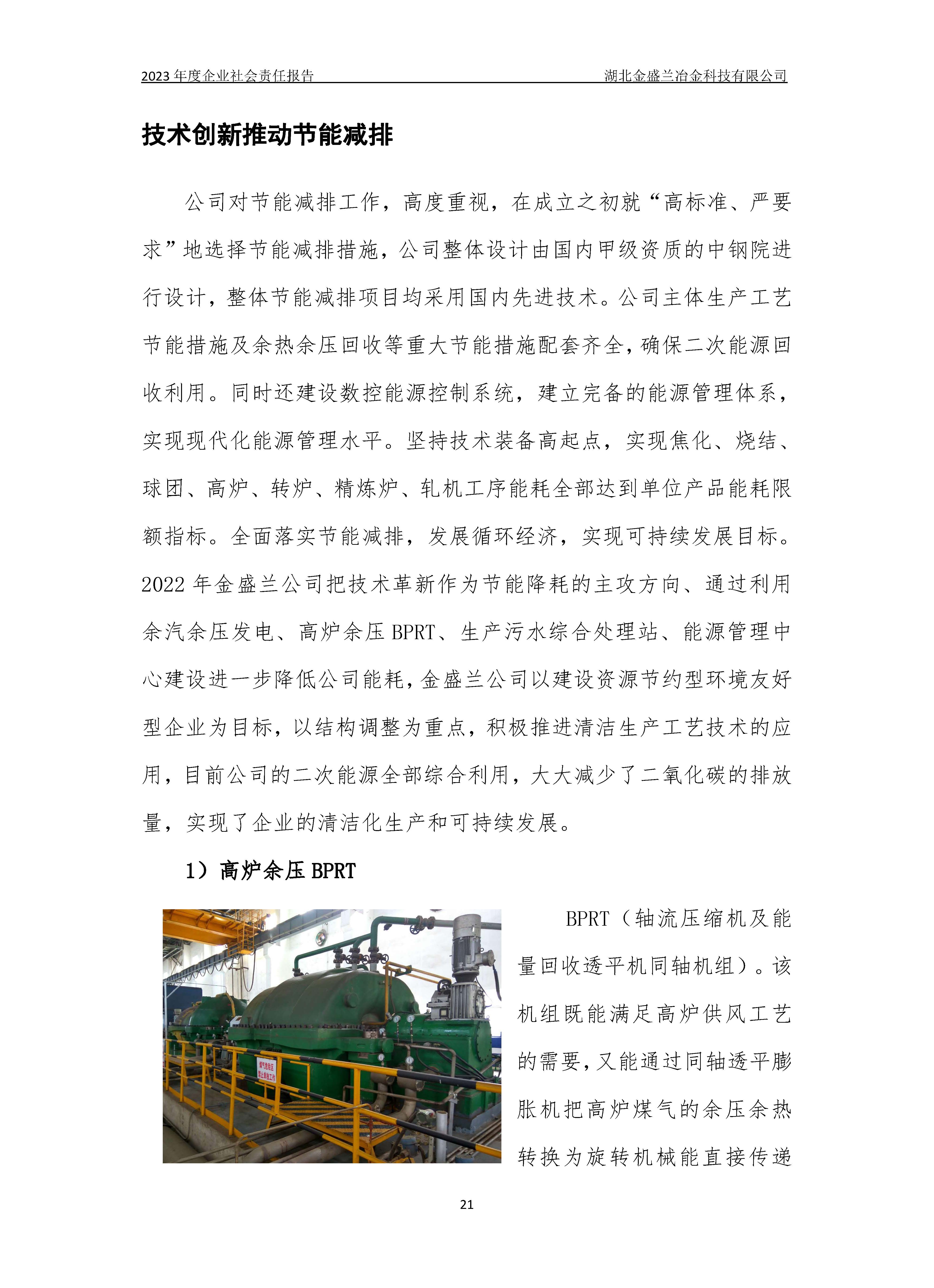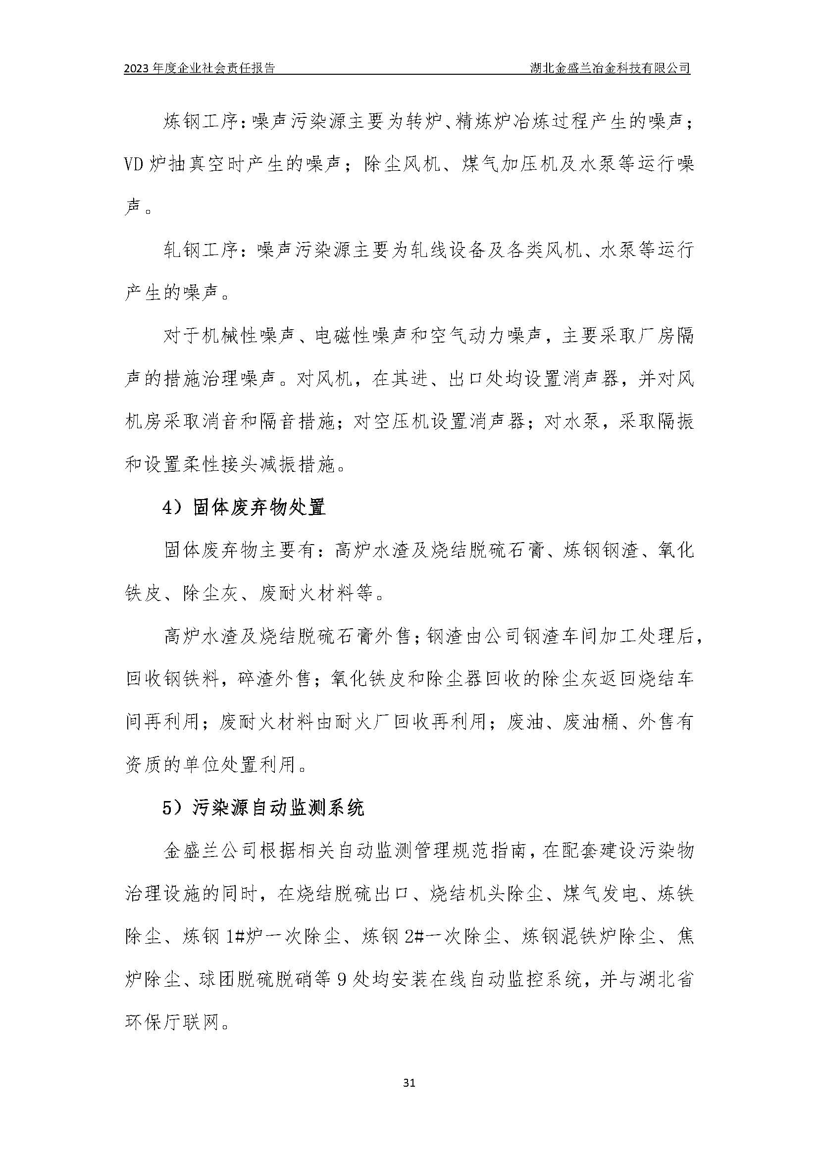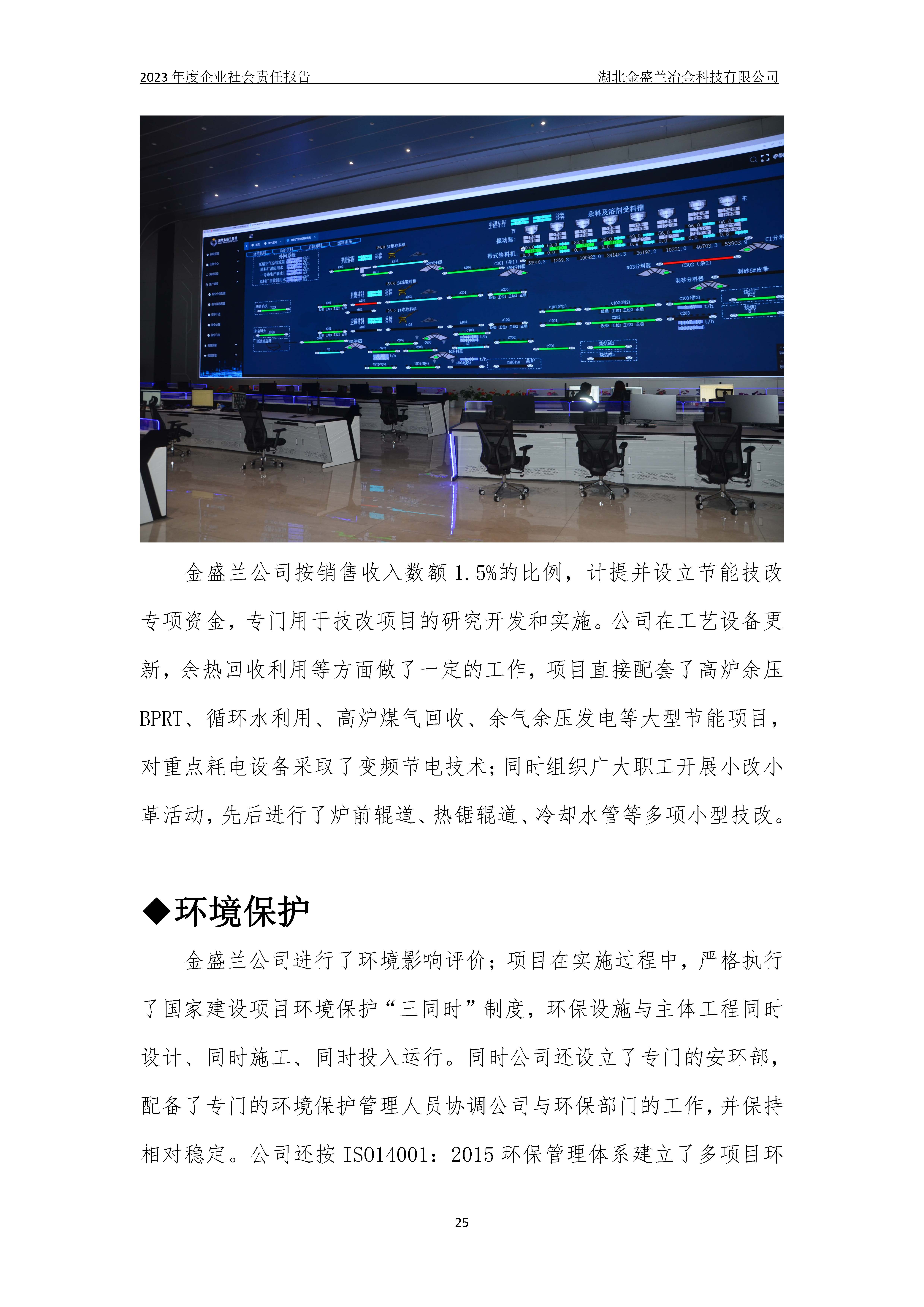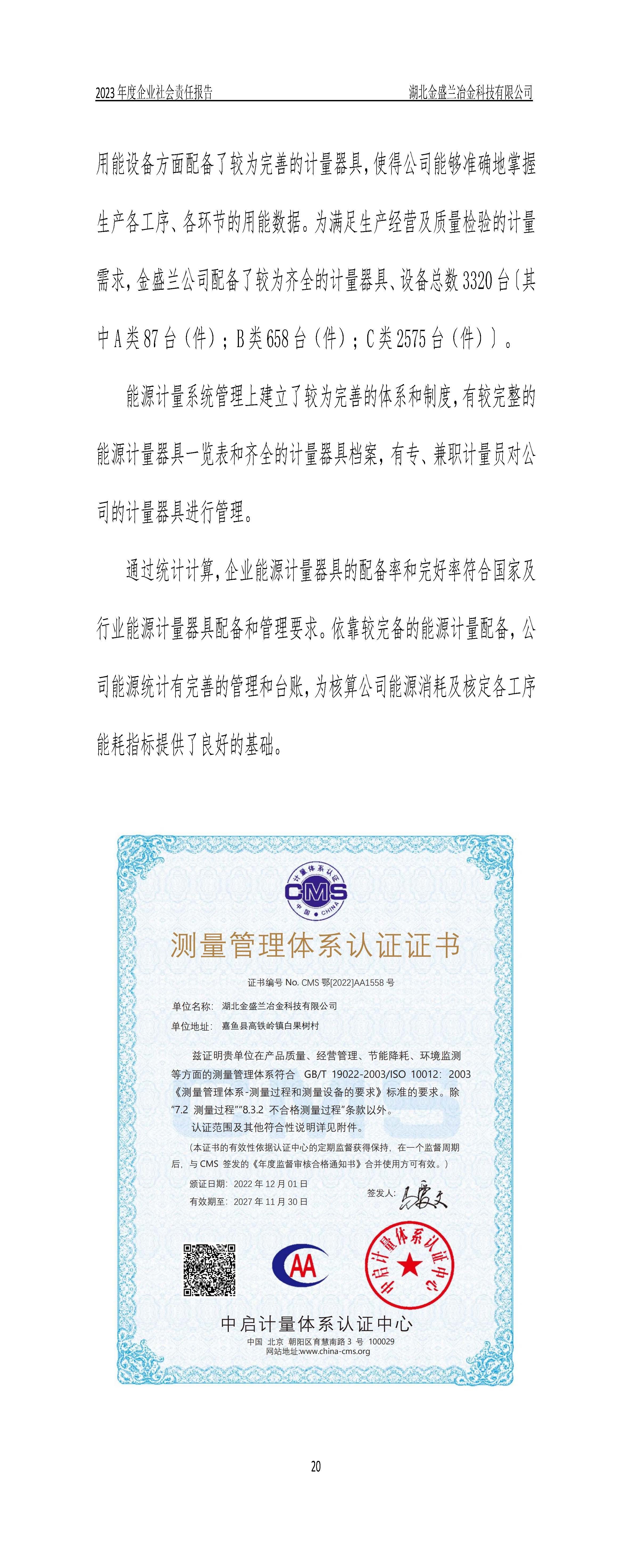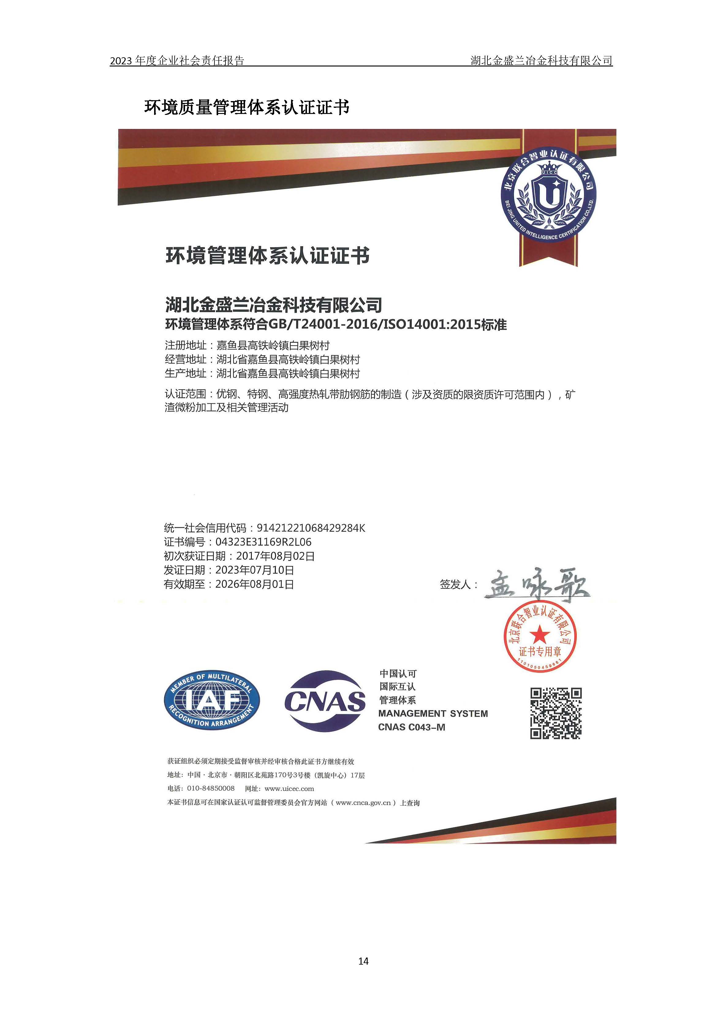 湖北金盛蘭冶金科技有限公司2023年度企業(yè)社會責(zé)任報告