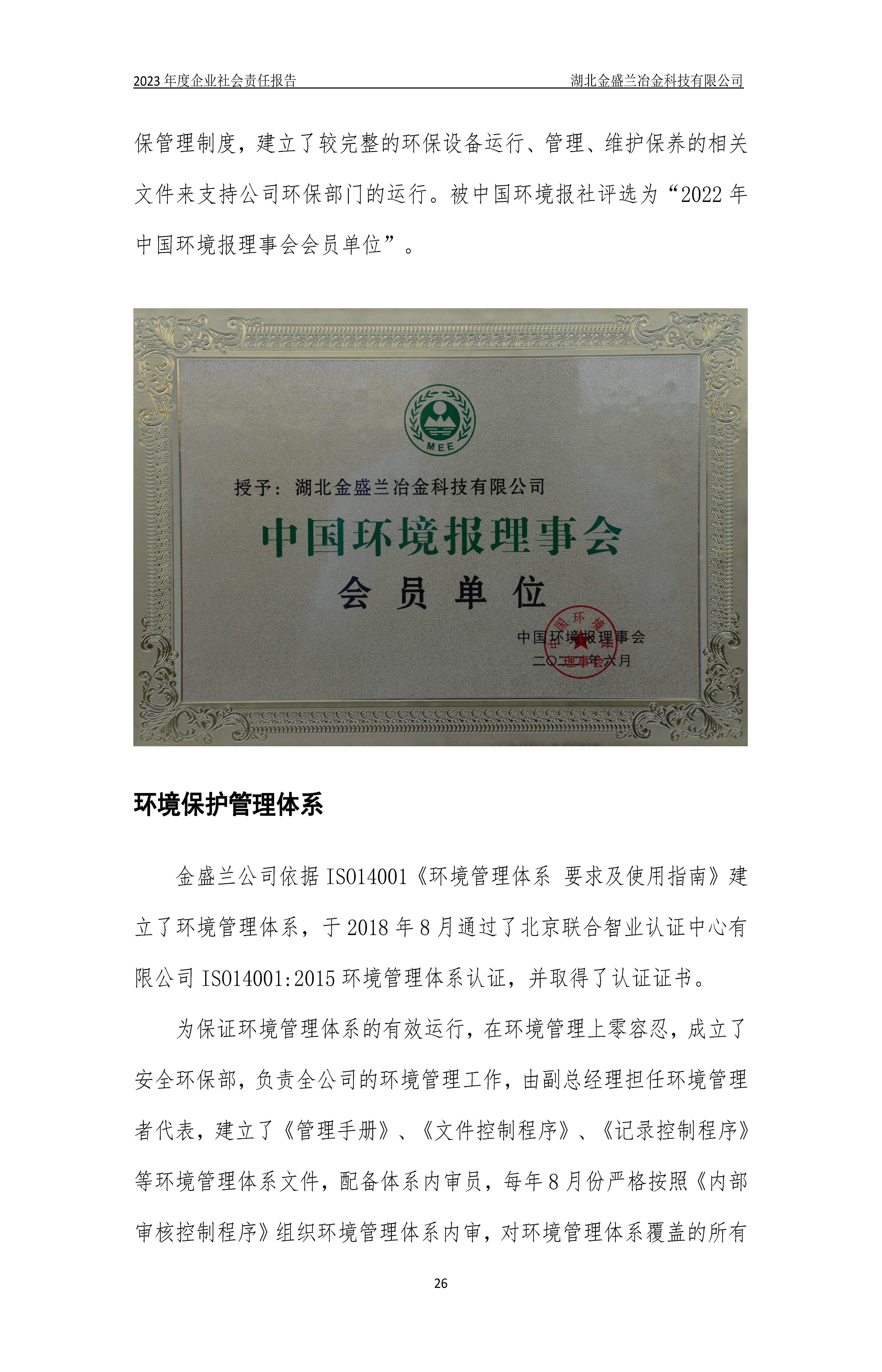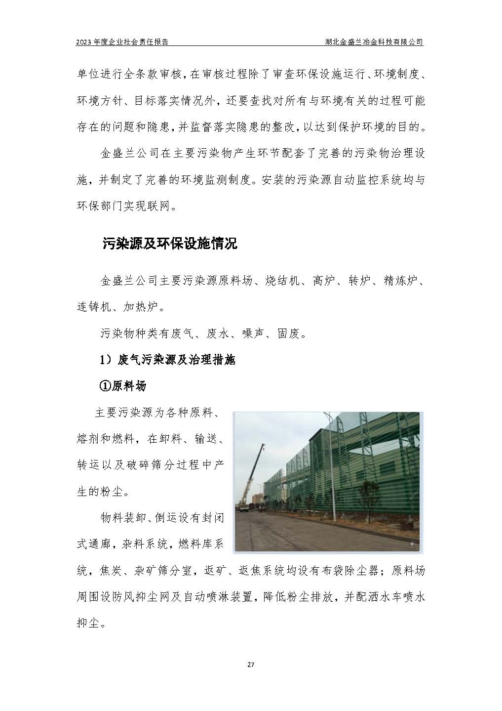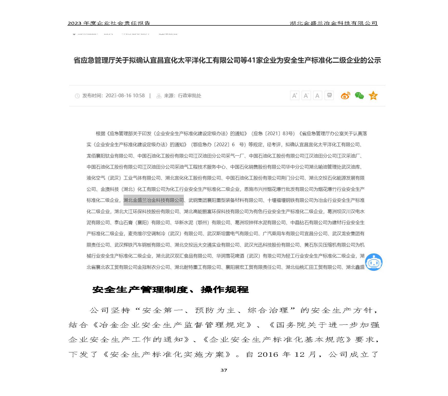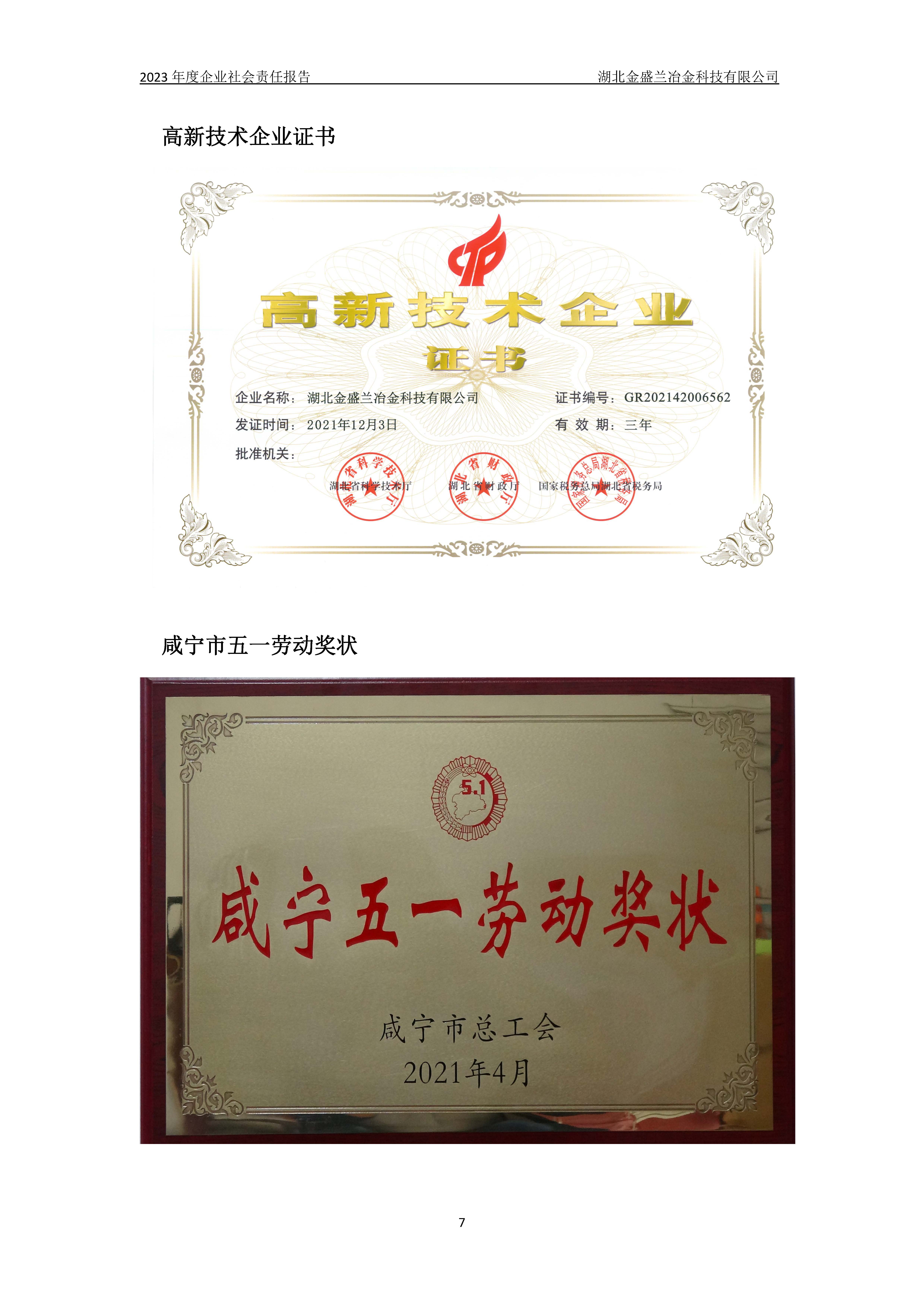 湖北金盛蘭冶金科技有限公司2023年度企業(yè)社會責(zé)任報告