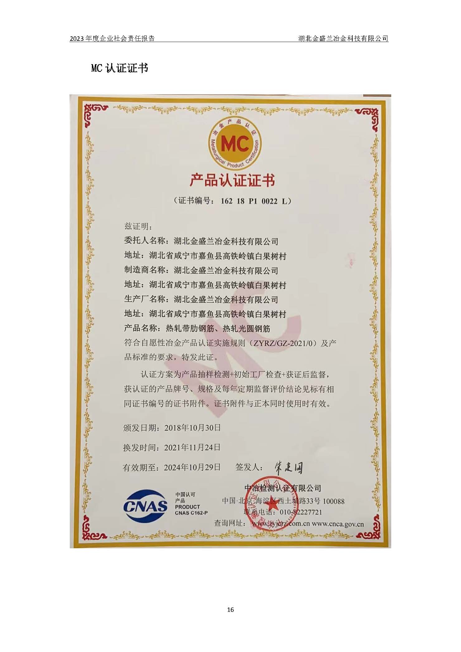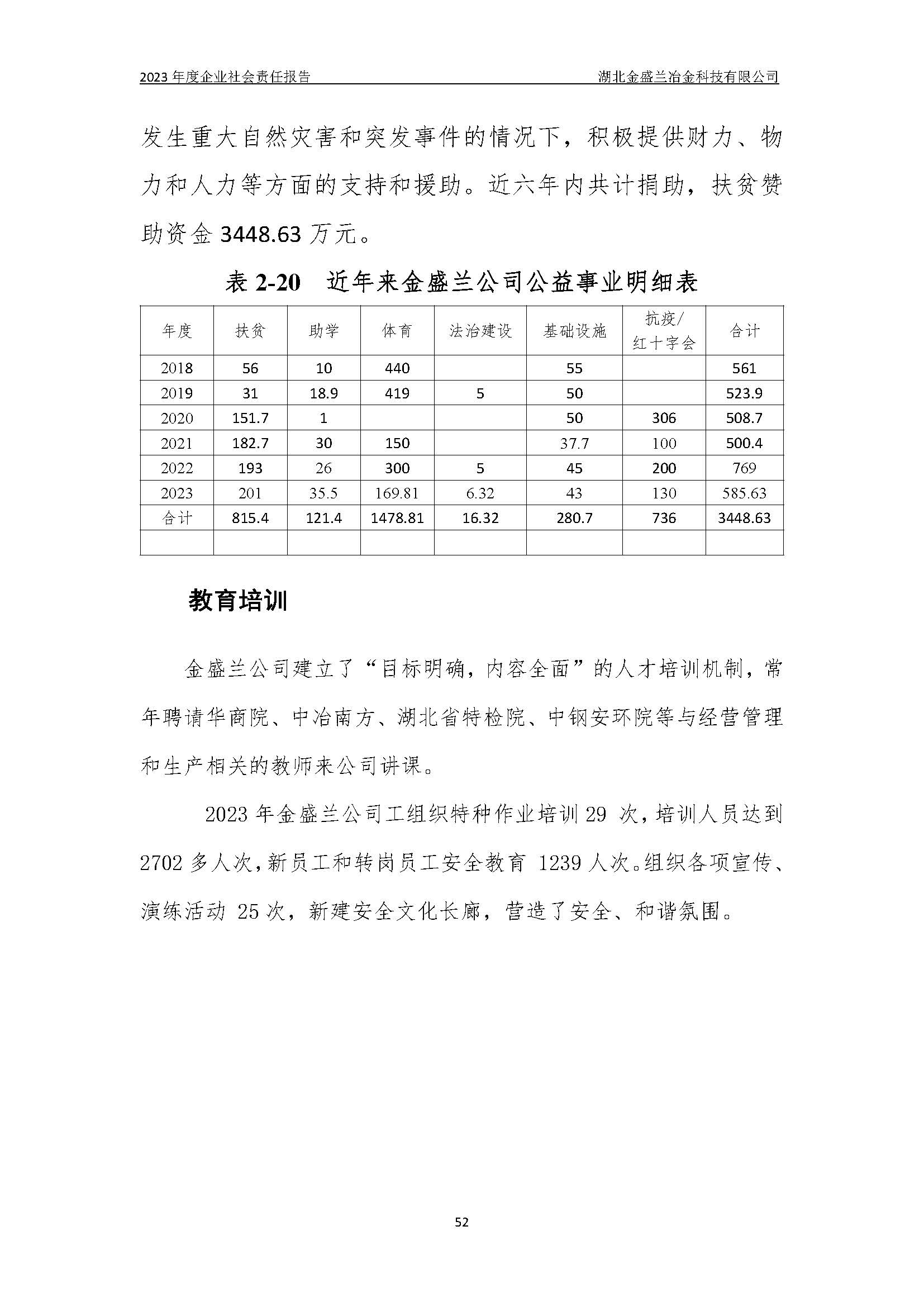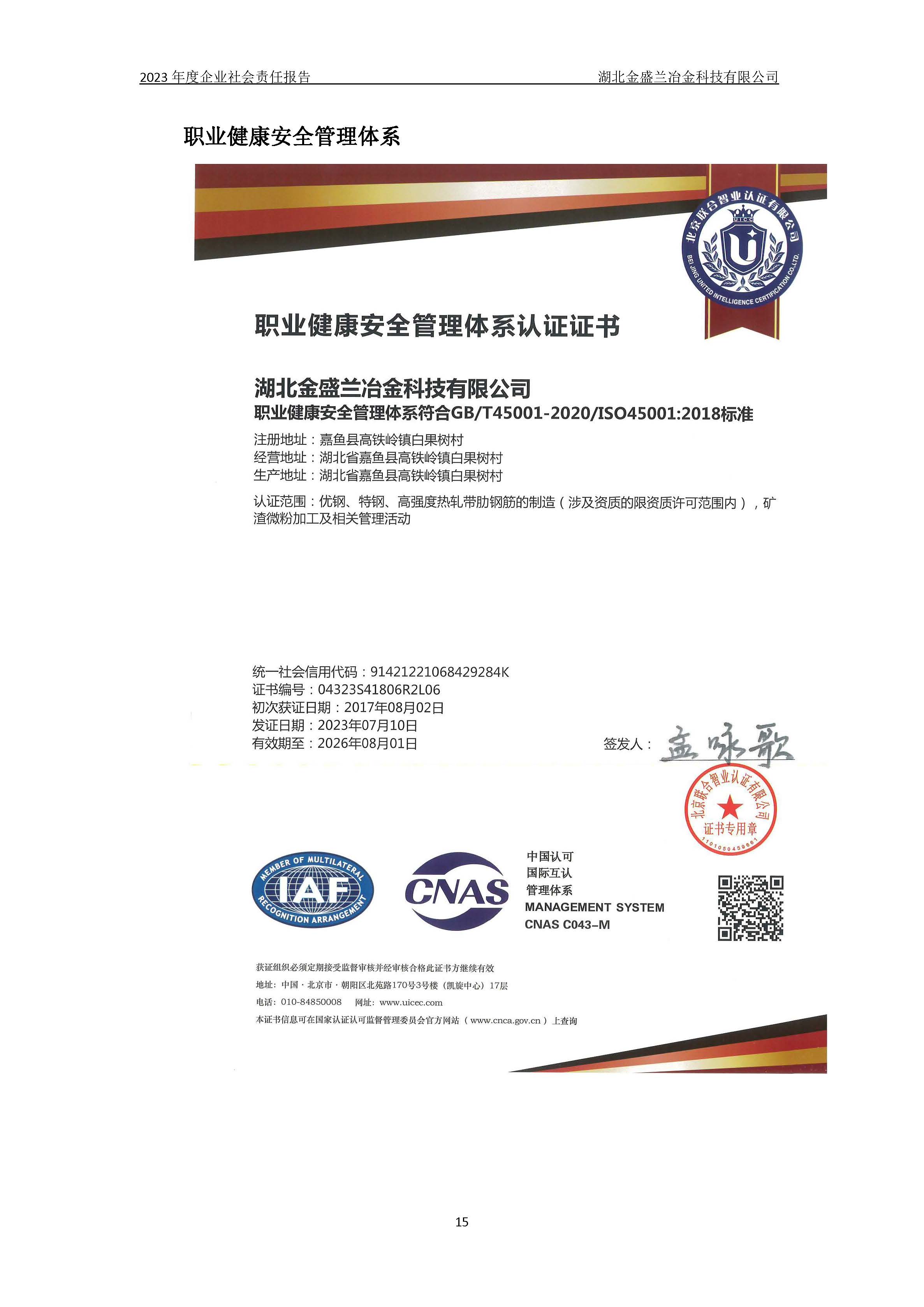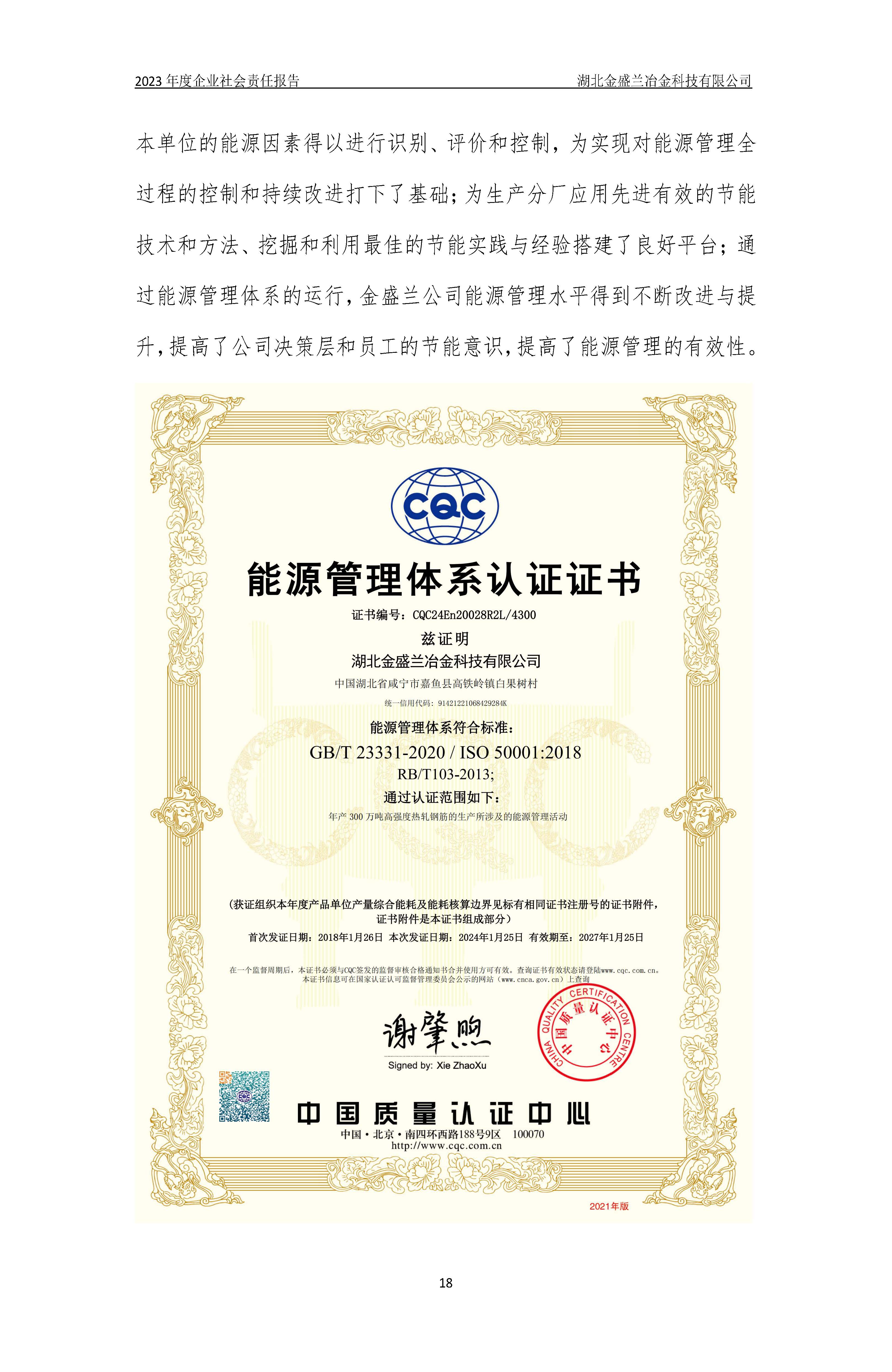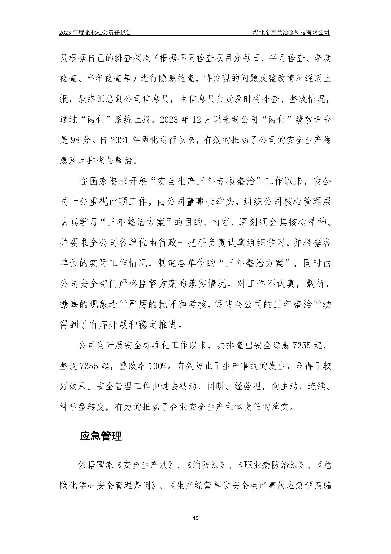 湖北金盛蘭冶金科技有限公司2023年度企業(yè)社會責(zé)任報告