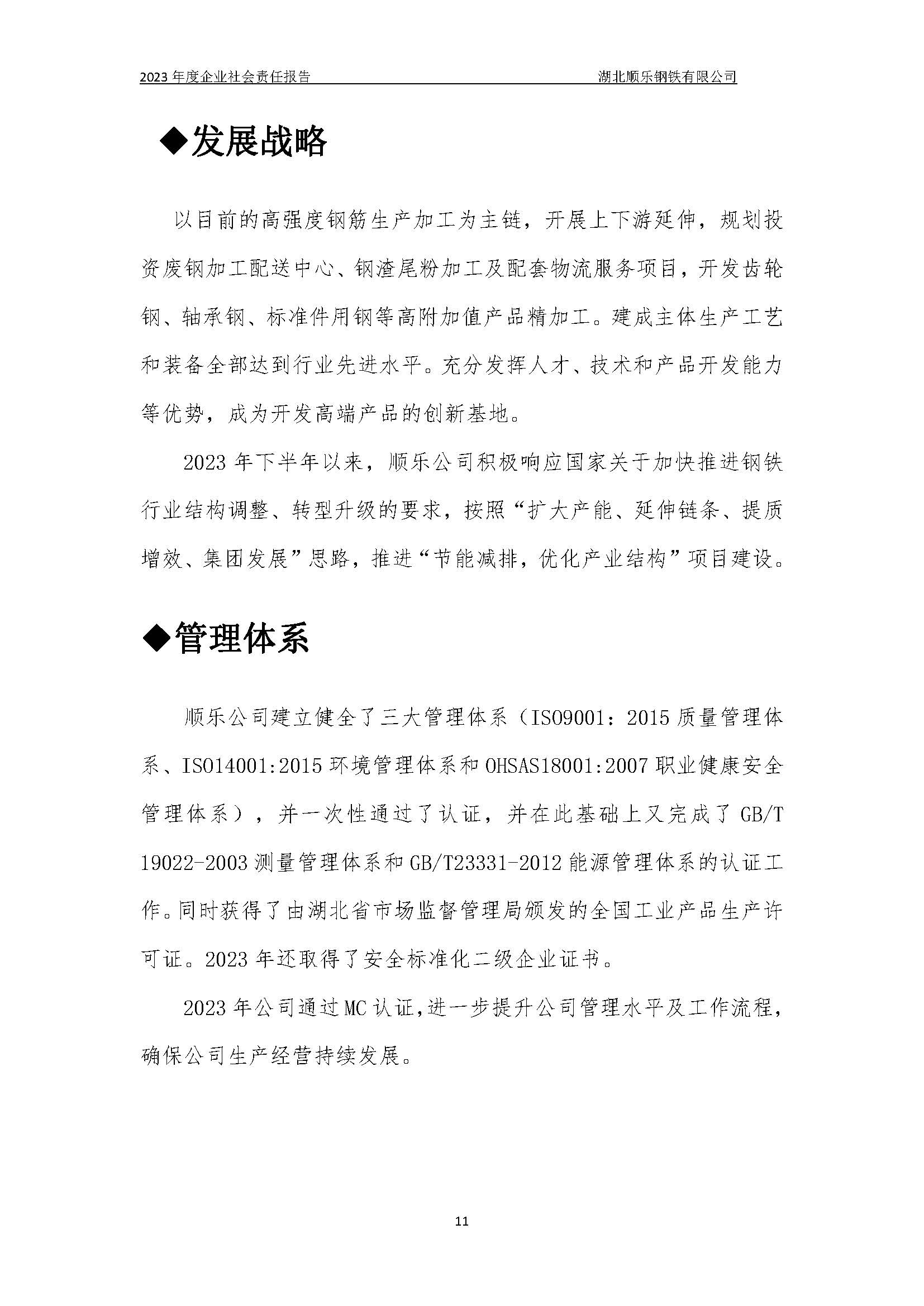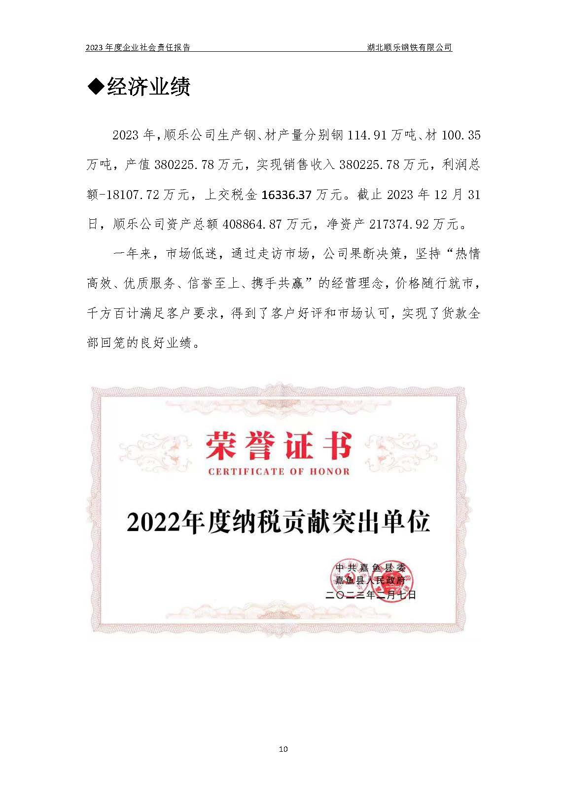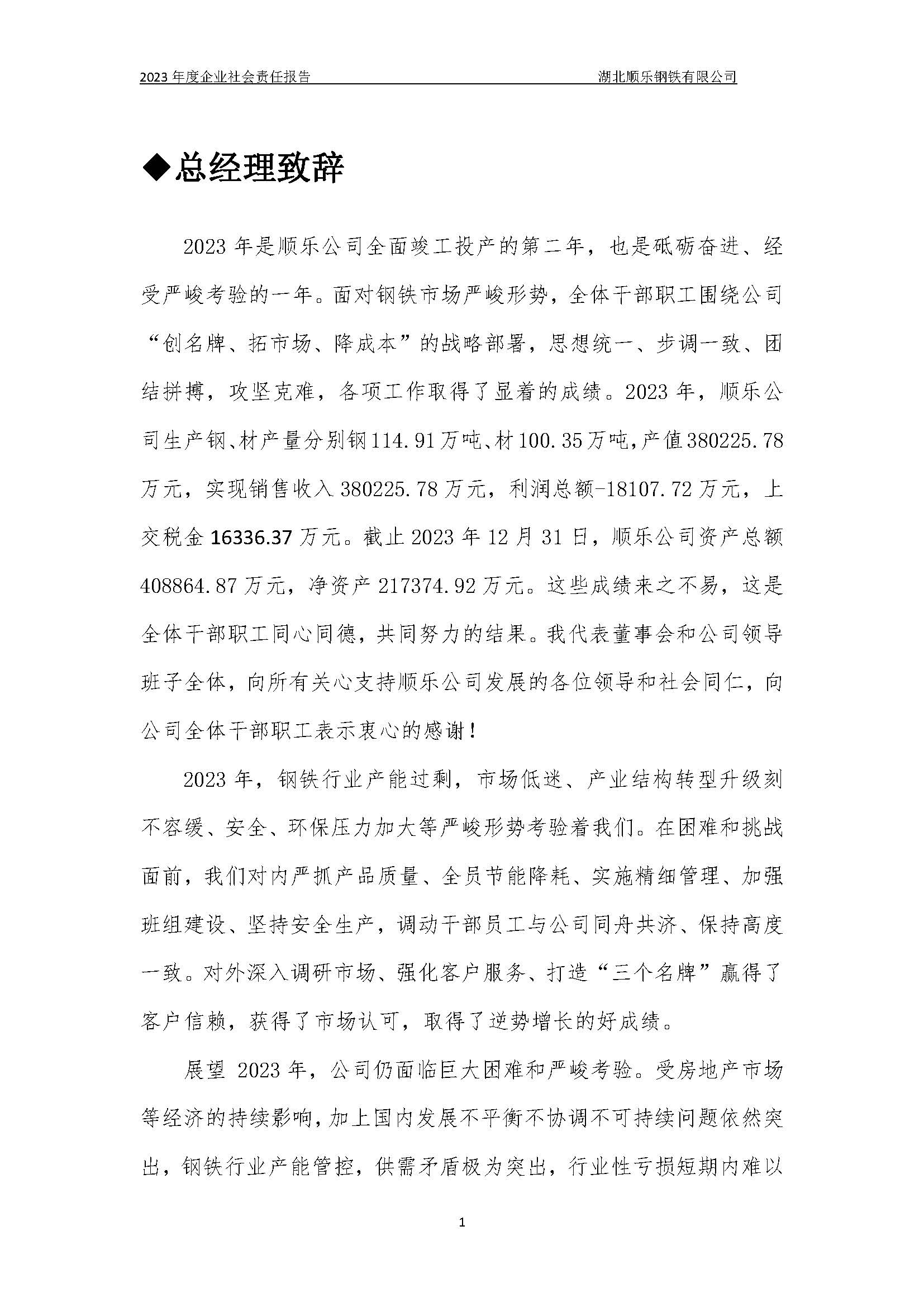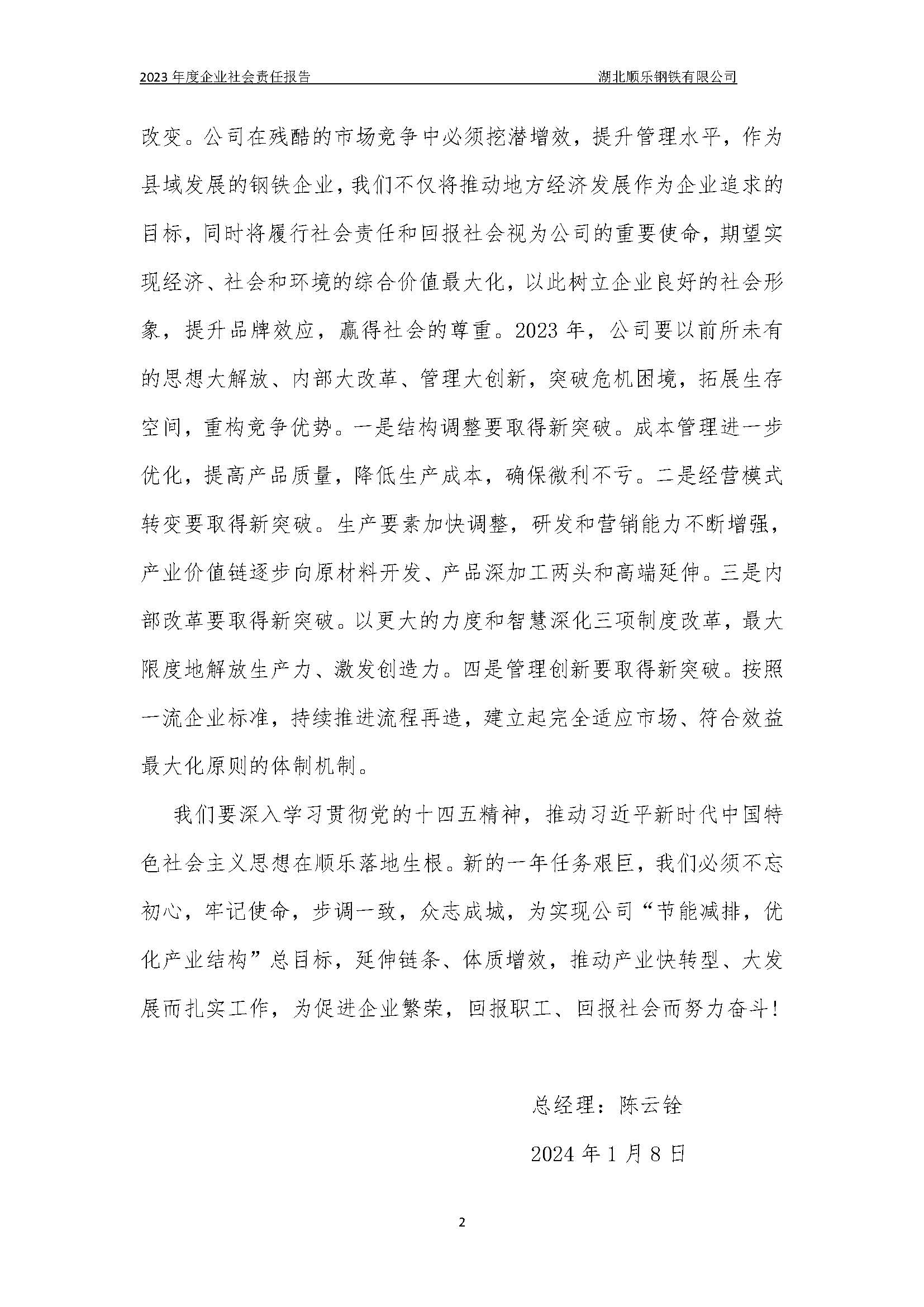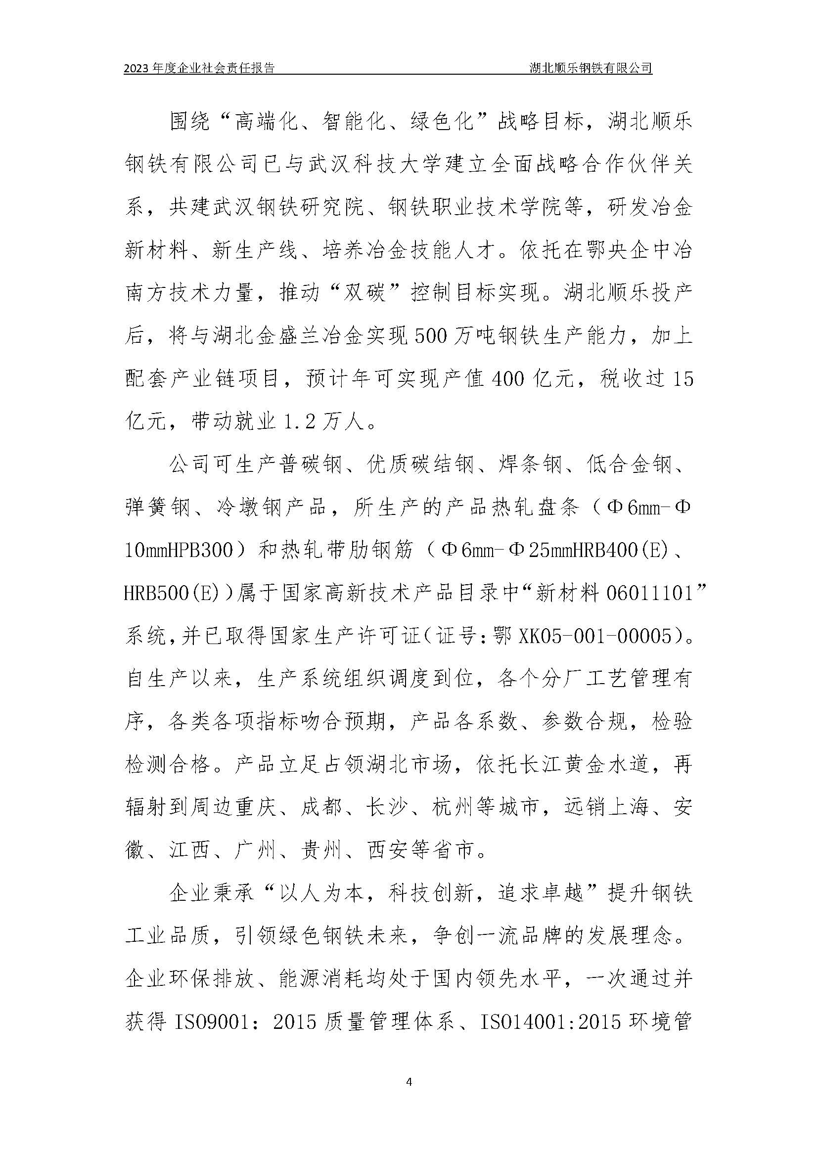 湖北順樂鋼鐵有限公司2023年度企業(yè)社會責任報告