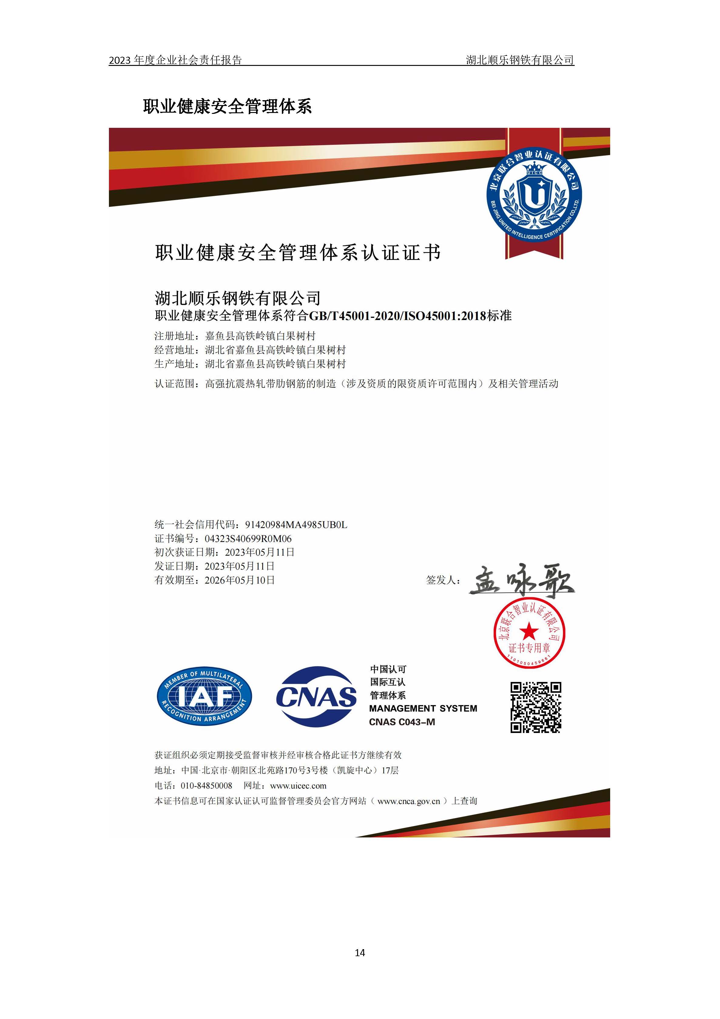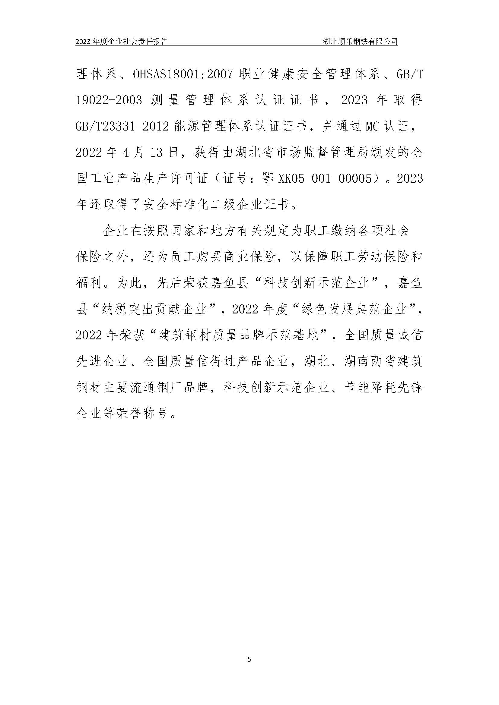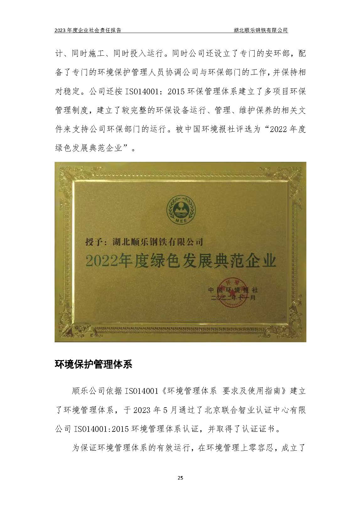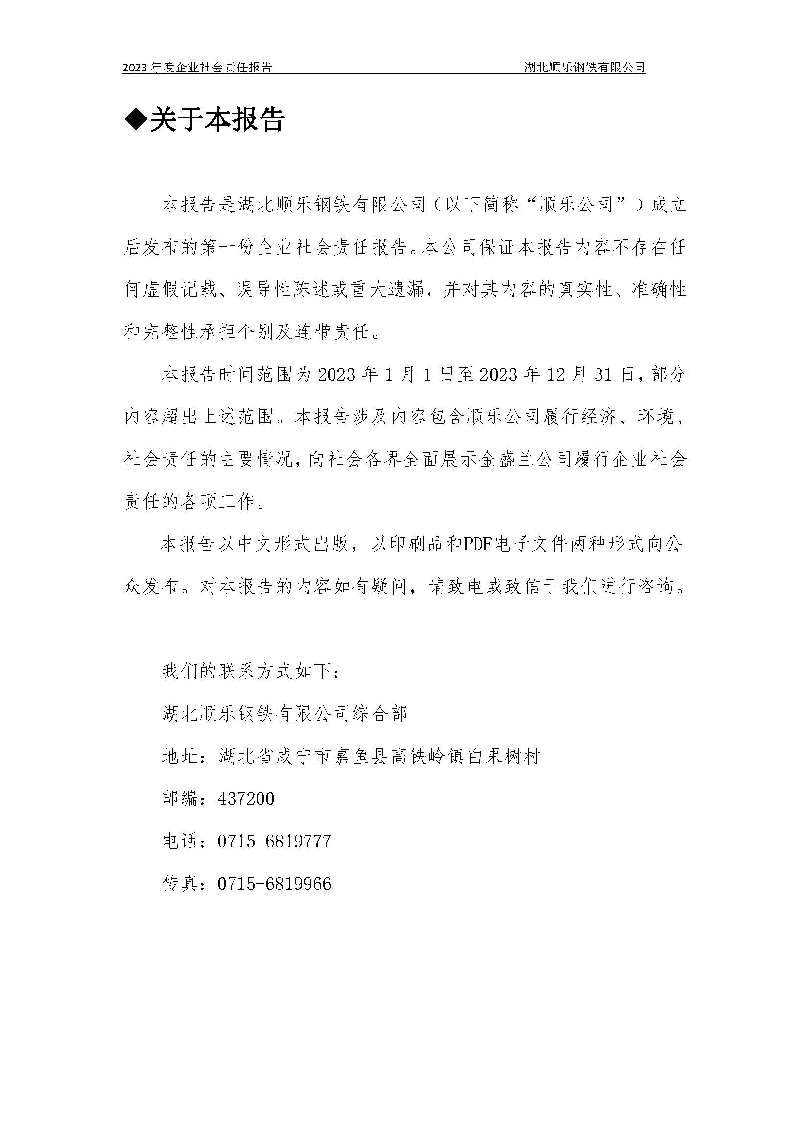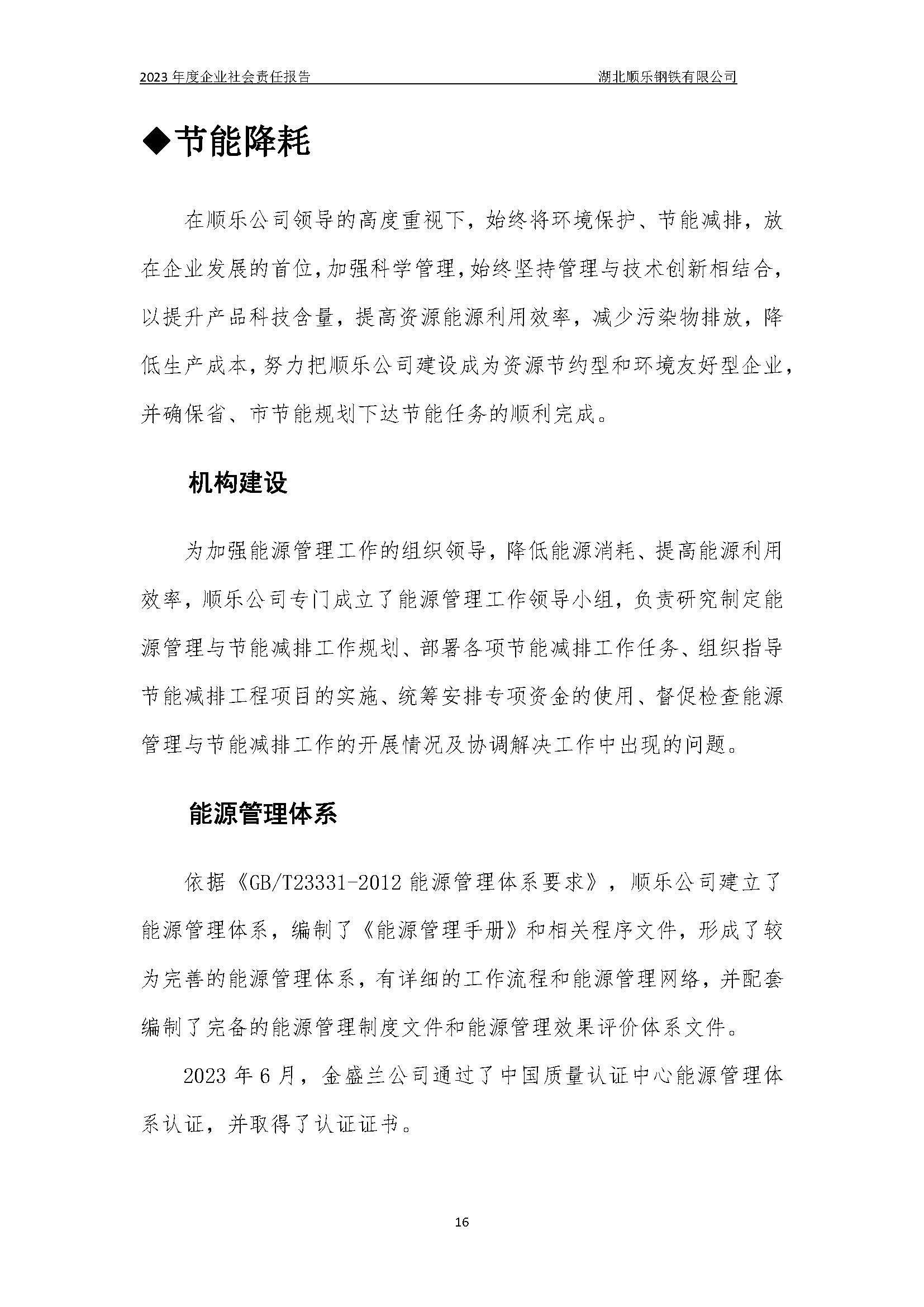 湖北順樂鋼鐵有限公司2023年度企業(yè)社會責任報告