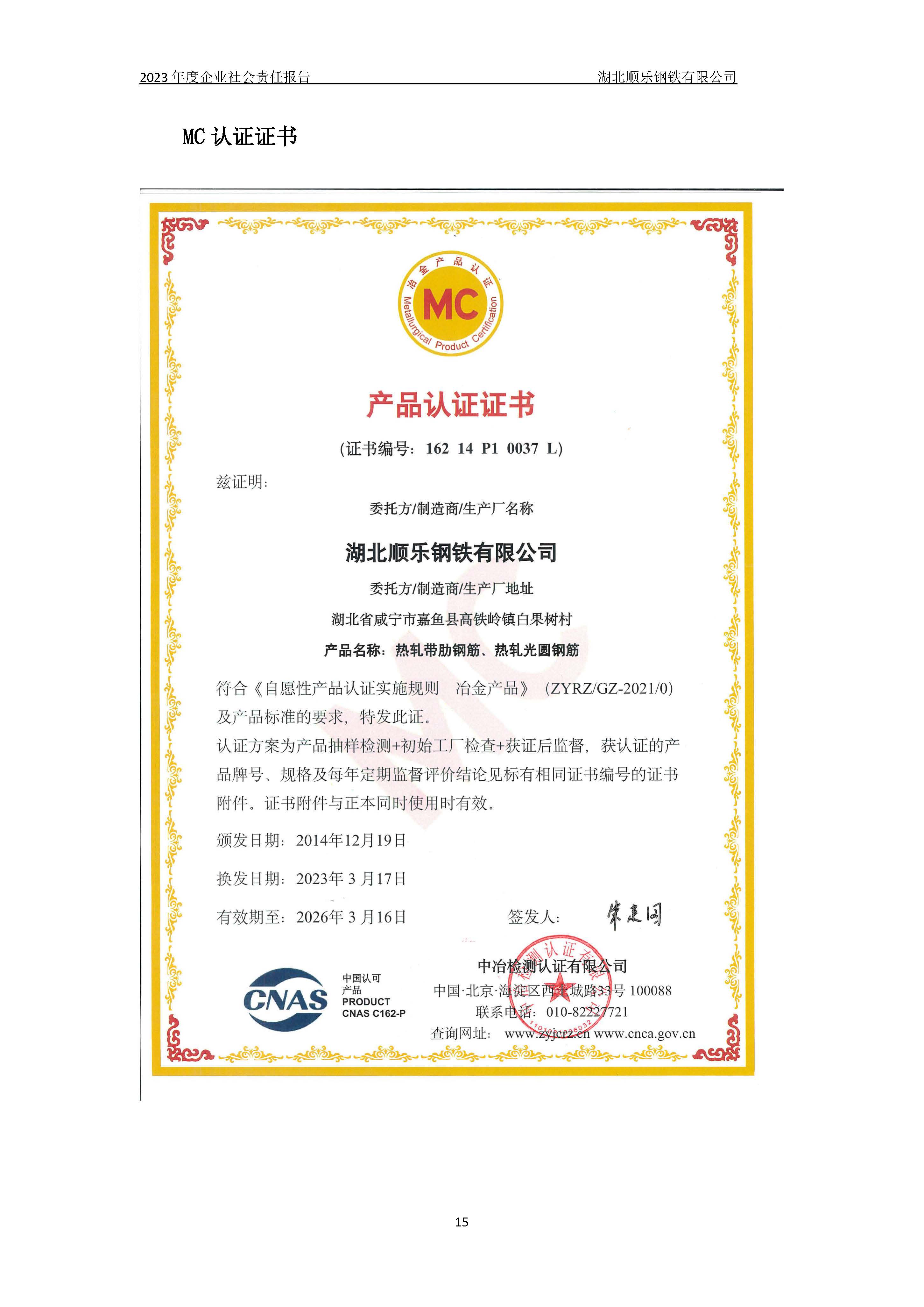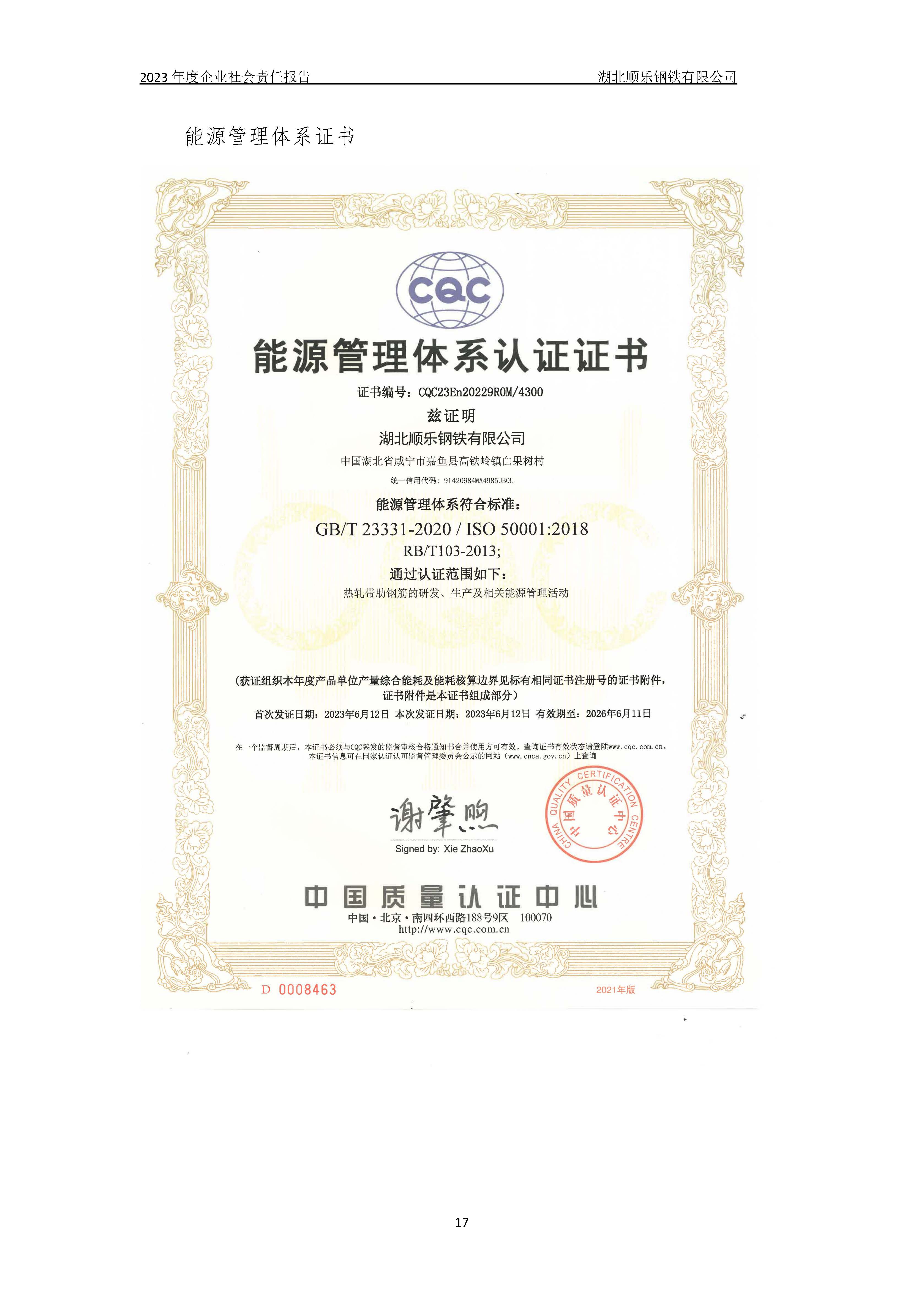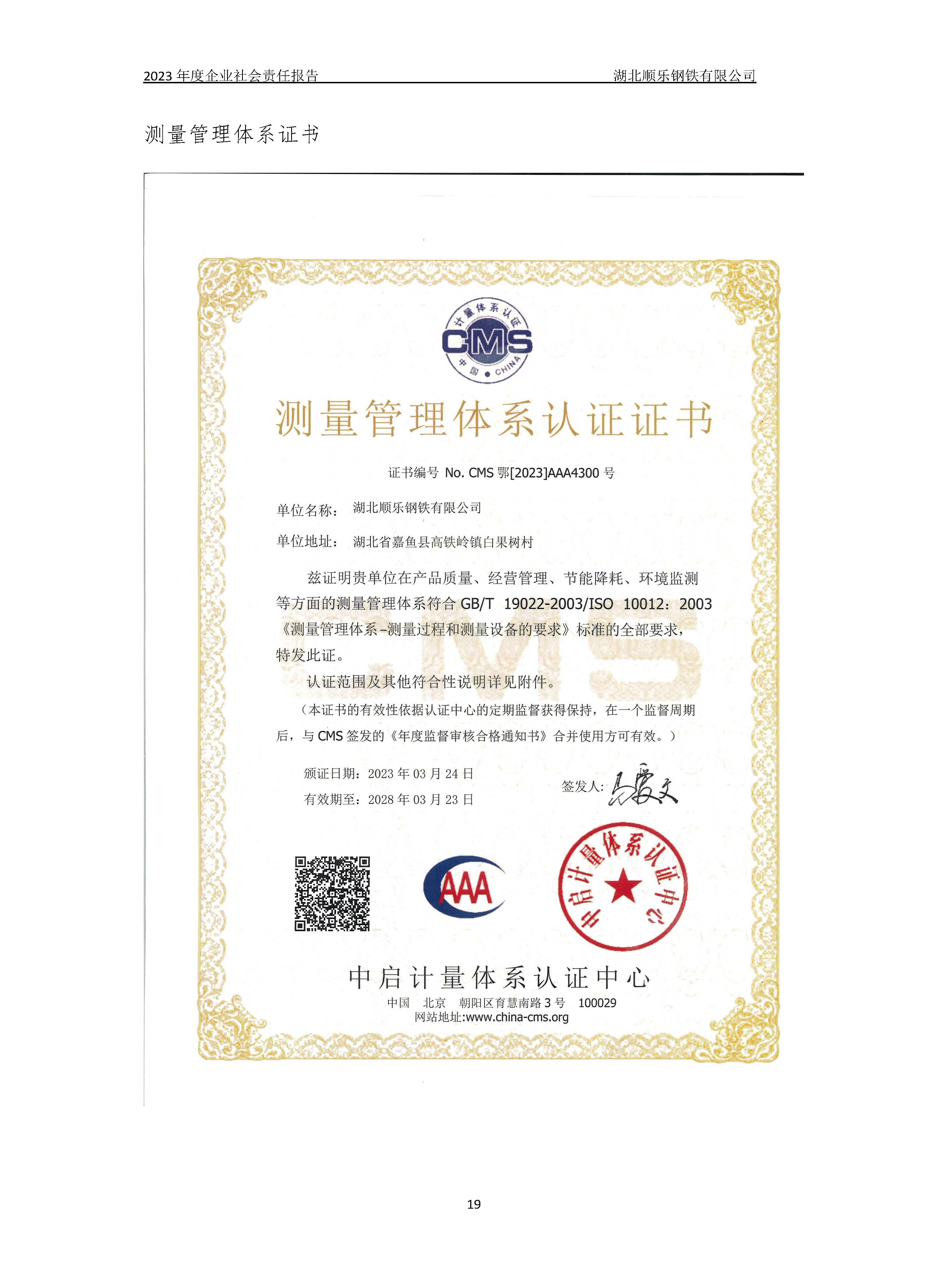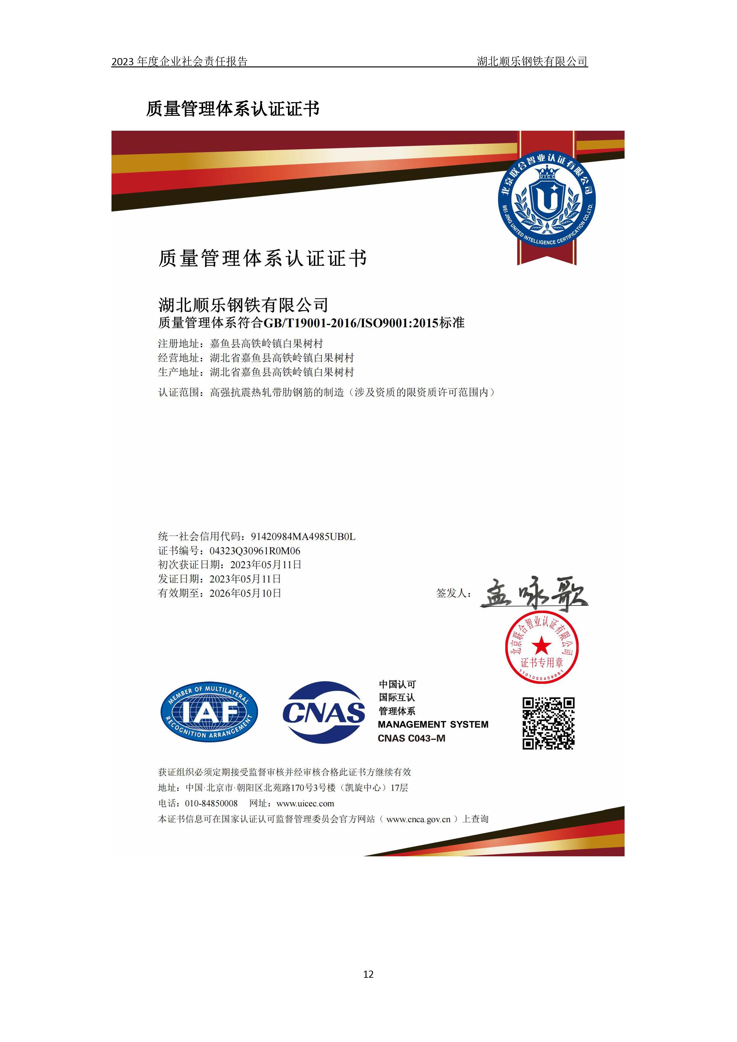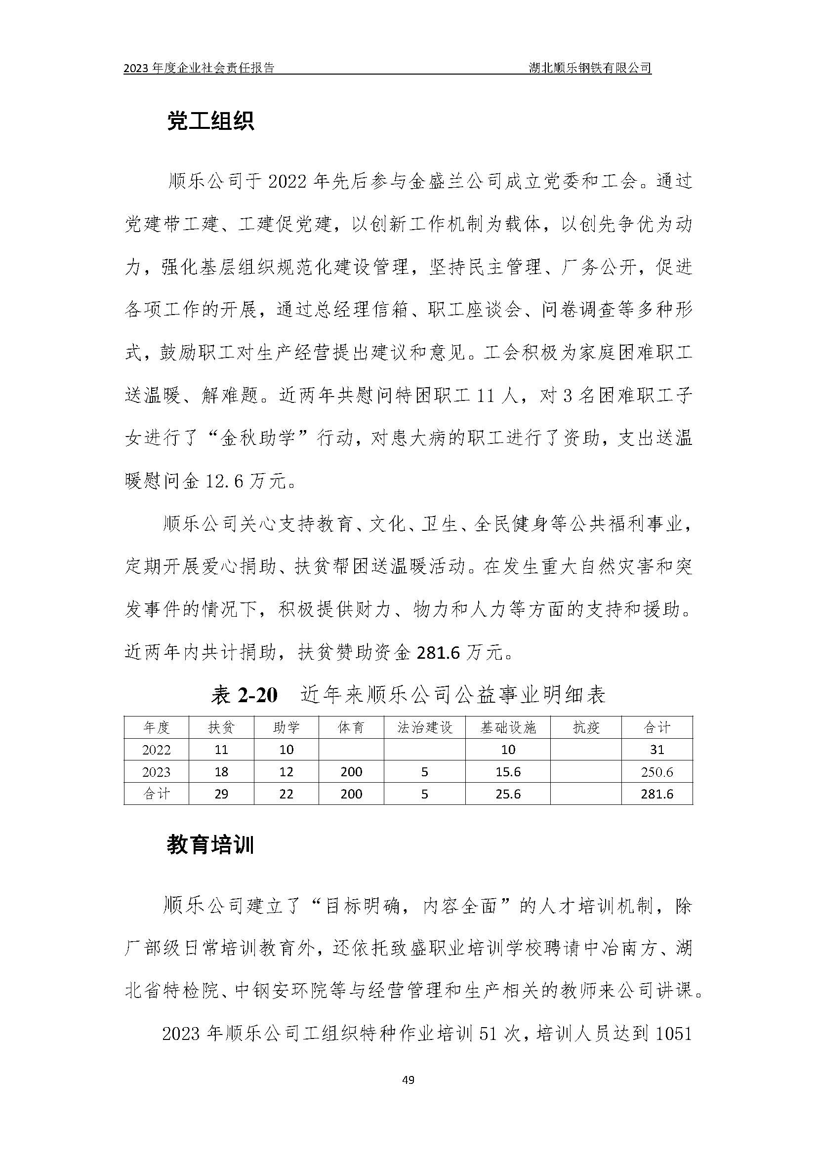 湖北順樂鋼鐵有限公司2023年度企業(yè)社會責任報告