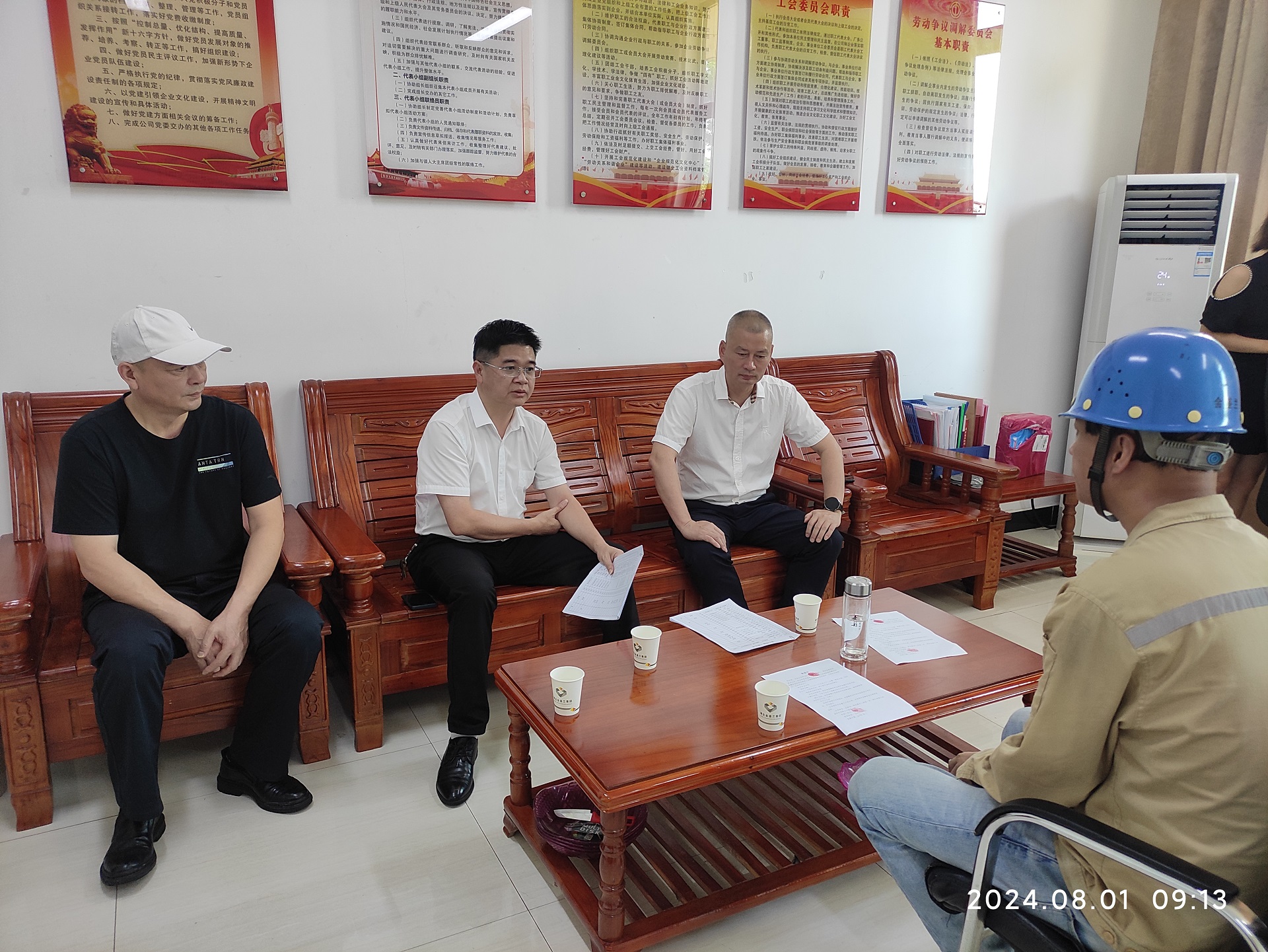 8月1日,受董事長的委托,公司黨委書記林云慶、工會主席王建輝來到黨群中心,看望慰問職工陳秋鋒,并將161968元愛心捐款送到他的手中。